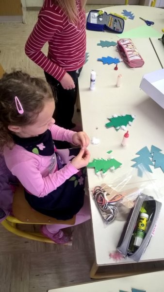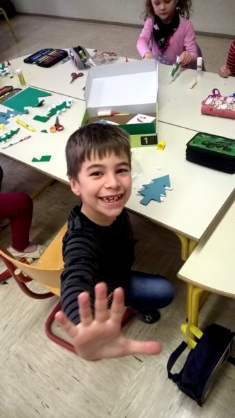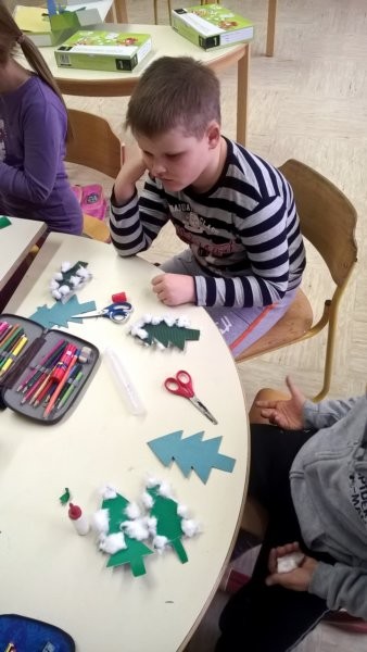 V torek, 15. 12. 2015, smo imeli učenci 1. razreda poseben dan. Imeli smo 1. tehniški dan. Izdelovali smo božično-zimske okraske s katerimi smo okrasili razred. Okraske smo izdelali iz različnih vrst papirja, katerega smo obrisovali, obrezovali, prepogibali, rezali in spoznavali njegove lastnosti. Vsak učenec je naredil dve smrekici in enega sneženega moža. Učiteljica je na koncu še vsakemu okrasku dodala vrvico in jih razobesila po razredu. Tako smo tudi v razredu dobilo božično vzdušje.
