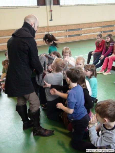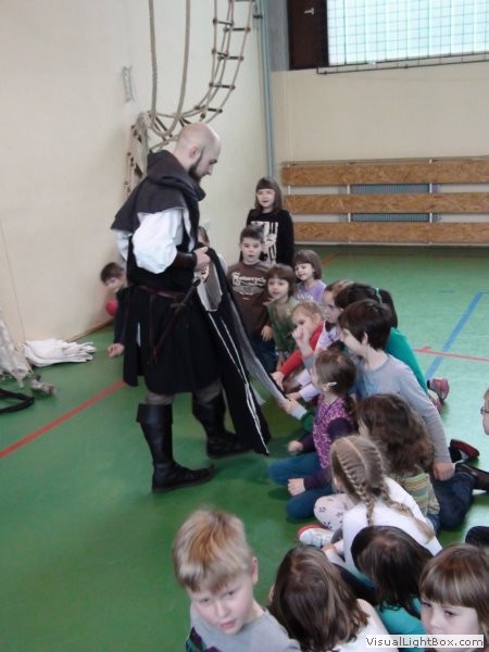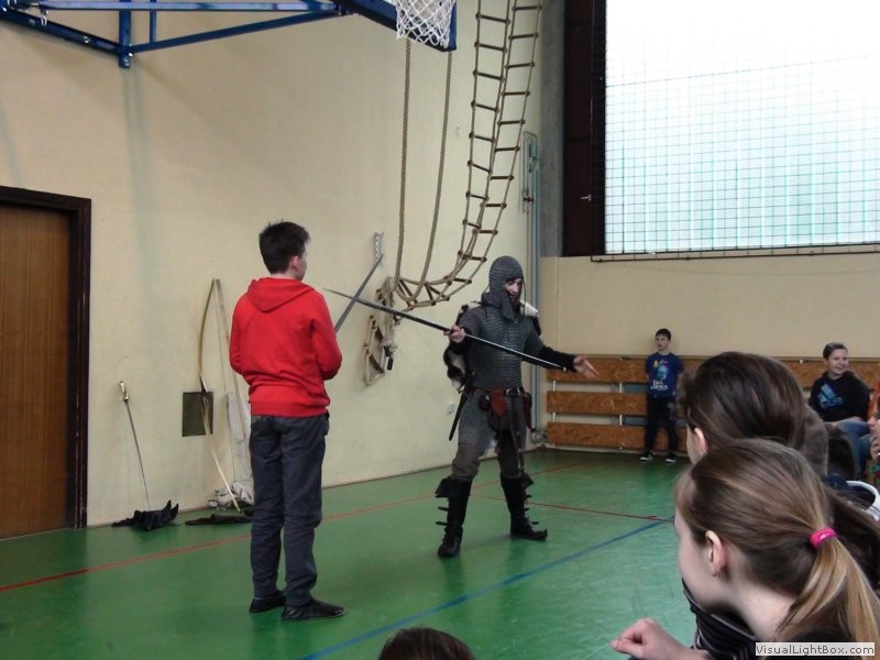 Kako otroke v osnovni šoli popolnoma motivirati za 60 in več minut? Se vam zdi nemogoče? Eriku Lamutu je v četrtek, 20. 2. 2013, uspelo. nas je na dragatuški osnovni šoli, kjer je tudi sam nekdaj gulil šolske klopi. Poznamo ga tudi kot raperja, ki je zaslovel pod umetniškim imenom Echobe. Mikrofon pa je zadnji dve leti zamenjal za meč in sabljo. Danes se poleg redne službe ukvarja še z viteštvom. Prijazno je sprejel povabilo in nam predstavil viteza. Navdušeni smo bili nad njegovo opremo, orožjem in seveda obleko. Erik si večino izdelkov izdela kar sam, kar mu vzame veliko časa in potrpljenja. Seveda ne deluje čisto sam, z društvom Beli volk na celjskem gradu vsakih 14 med vikendi prikazujejo srednjeveško življenje. Gostom skušajo predstaviti boje, obleko, način življenja, opremo, razne skeče, lokostrelstvo.
