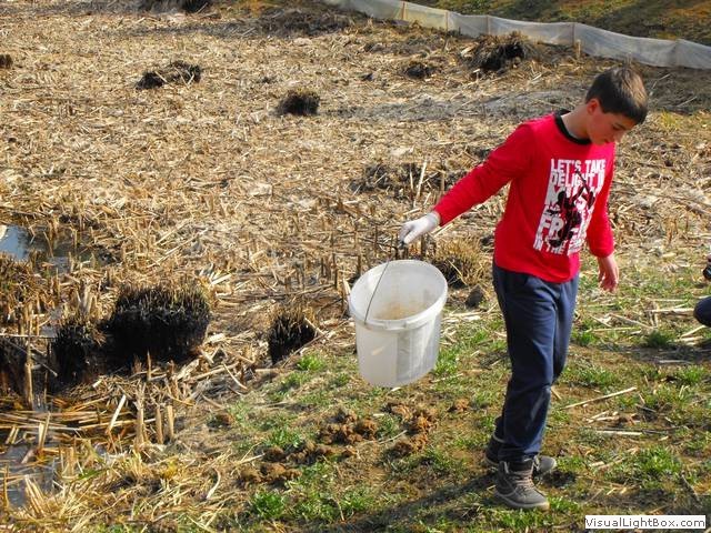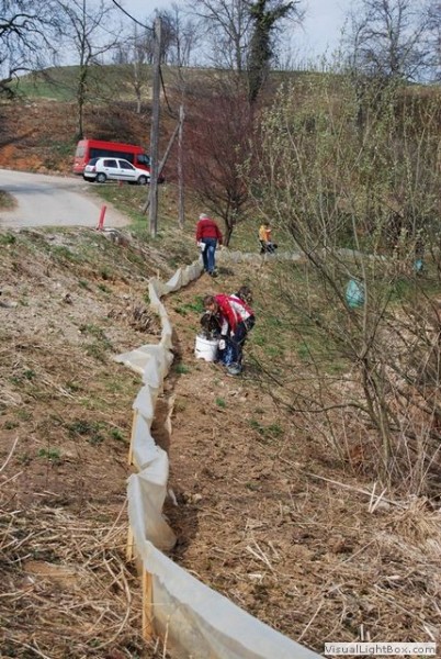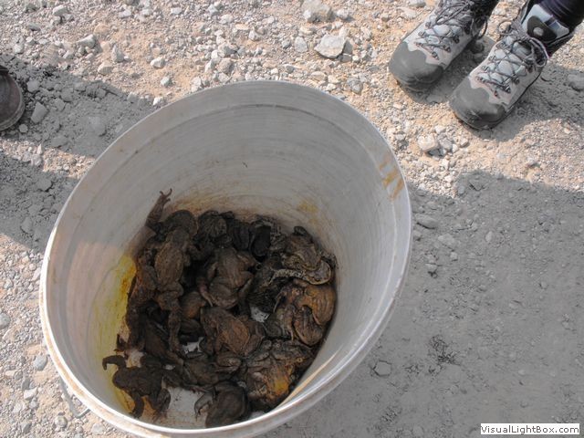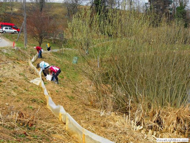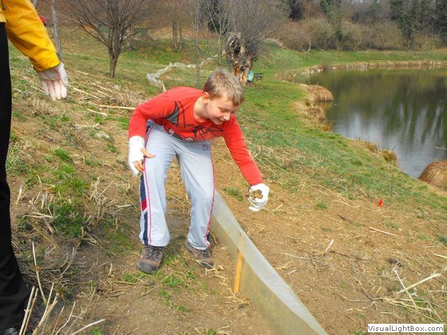 Tako smo se vsi z učiteljico in s hišnikom odpravili proti kalu, kjer nas je pričakala vodička, ki nam je razdelila vedra in rokavice ter učne liste, na katere smo pisali, koliko in katere vrste dvoživk smo našli. Po skupinah smo odšli na različne lokacije, kjer smo pomagali dvoživkam. Največ je bilo krastač. Opazili smo tudi rjave žabe, pupkov pa žal ne. Tako smo sami učenci pripomogli tristotim dvoživkam, hišnik pa je pomagal kar šeststotim. Skupaj smo torej pobrali okoli devetsto žab, ki so z našo pomočjo varno prispele v kal.