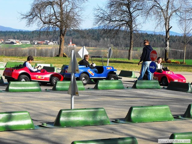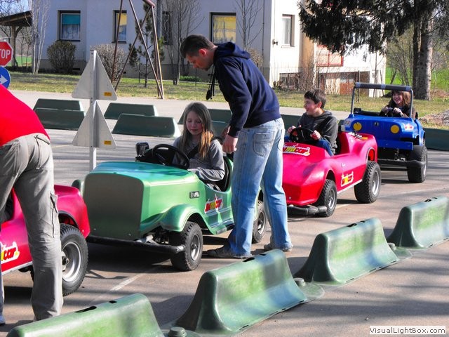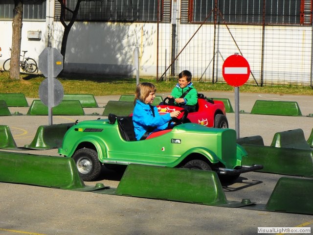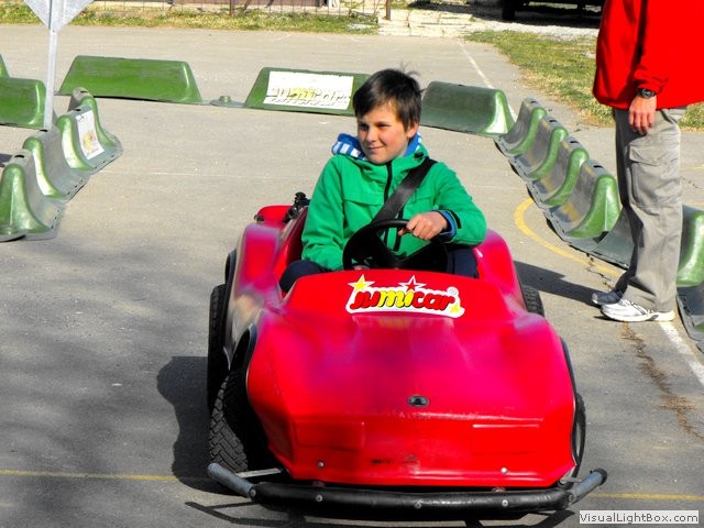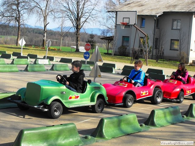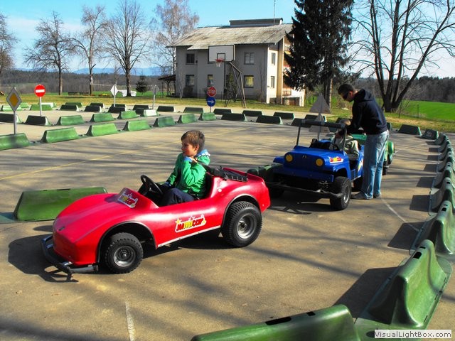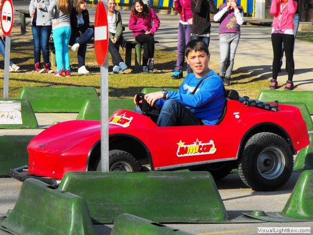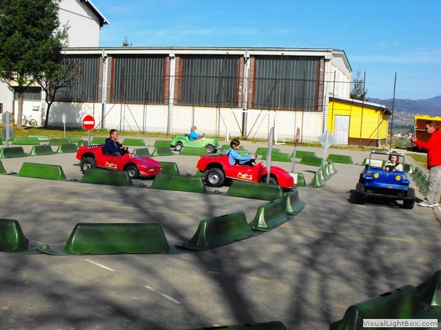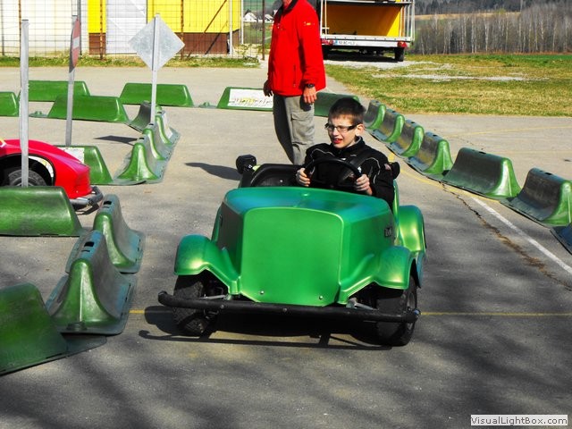 Nato smo se odpravili na vožnjo s pravimi mini avtomobili na bencin. Na našem šolskem igrišču nas je pričakal še en gospod, ki nas je razdelil v sedem skupin, saj nas je bilo več kot avtov. Vsi smo potrpežljivo čakali na vrsto za vožnjo, saj se nam je zdel poligon, po katerem se naj bi vozili, zelo zanimiv in zabaven. Veliko učencev nas je bilo živčnih, saj nismo vedeli, kako bo, ko bomo prišli na vrsto. Ko se je to zgodilo, je bilo nekaj učencev strah, potem pa so ga le premagali.