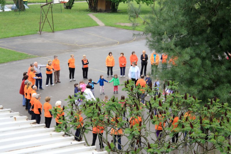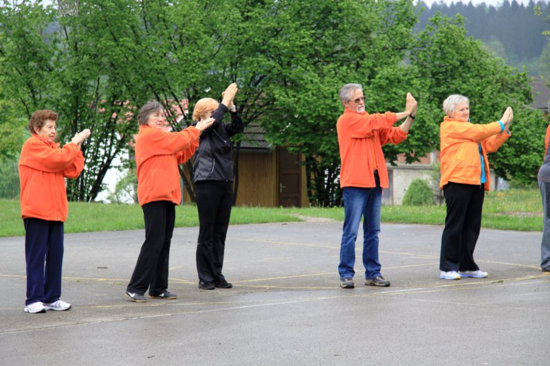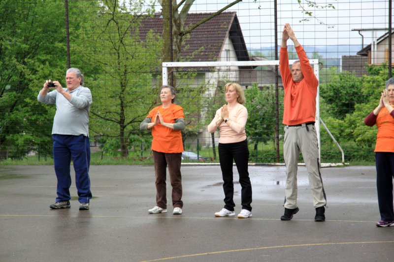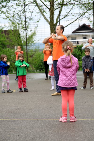 Tako so danes, 25. 4. 2014, v večjem številu obiskali člane iz Dragatuša, ter z njimi in z otroci iz vrtca skupaj telovadili na šolskem igrišču. Kljub oblačnemu vremenu so prišli iz različnih krajev Bele krajine, skupaj se jih je zbralo 57, pridružilo se jim je tudi 17 otrok iz dragatuškega vrtca z vzgojiteljicama Andrejo Kmetič in Vesno Noč Pavlakovič, vadbo pa je vodil dr. Nikolay Grishin.