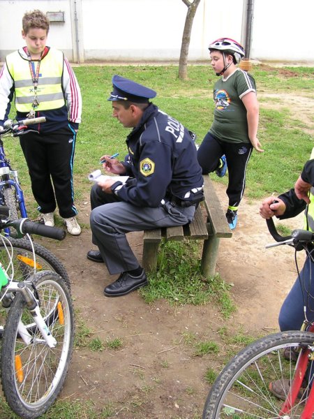 Ob 9. je prišel policist Anton Čadonič. Najprej smo imeli tehnični pregled koles, nato smo začeli z izpitom.