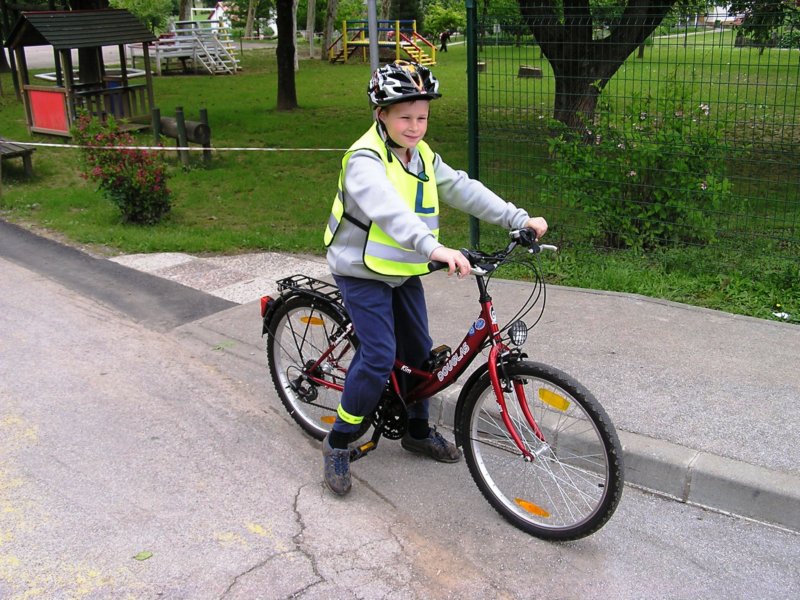 15. 5. 2014 smo imeli učenci 5. razreda kolesarski izpit. Vodila nas je učiteljica Marija Vesna Frank. Zjutraj smo se ogreli s skupino “Šola zdravja“. Nato smo dva po dva vadili. Potem smo imeli malico.