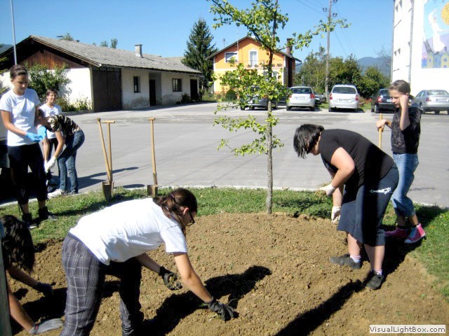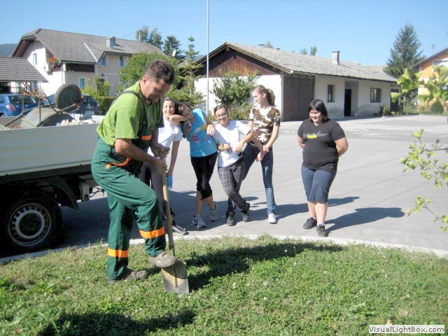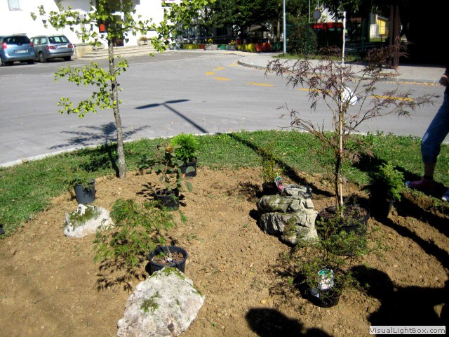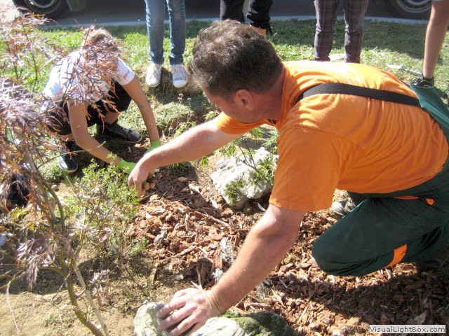 Konec meseca septembra 2011 smo se pri izbirnem predmetu LIKOVNO SNOVANJE 1 srečali s poklicem vrtnarja in krajinskega arhitekta. V ta namen smo na vrt naše šole povabili g. Mihaela Mravinca iz Vrtnarije Kanofleur iz Vinice, ki se je z veseljem odzval našemu povabilu. Predstavil nam je svoj poklic vrtnarja, nas tudi naučil, kako se vrt uredi, vse od priprave gredice do zasaditve rastlin in končne dekoracije s kamenjem in lubjem. Zasadili smo nekaj grmov in rož trajnic.