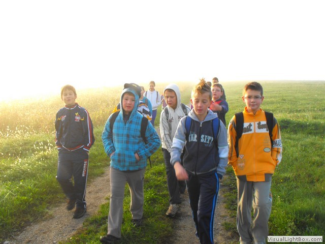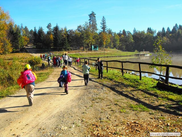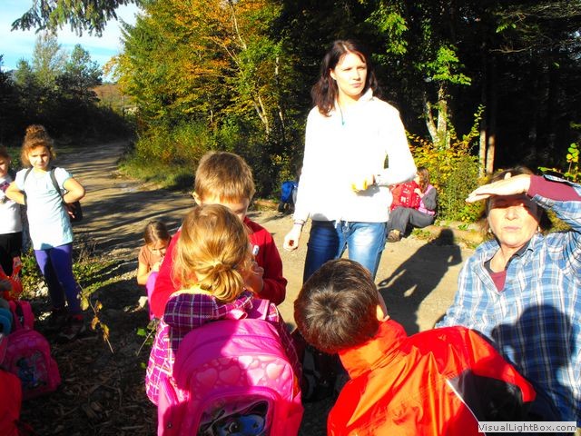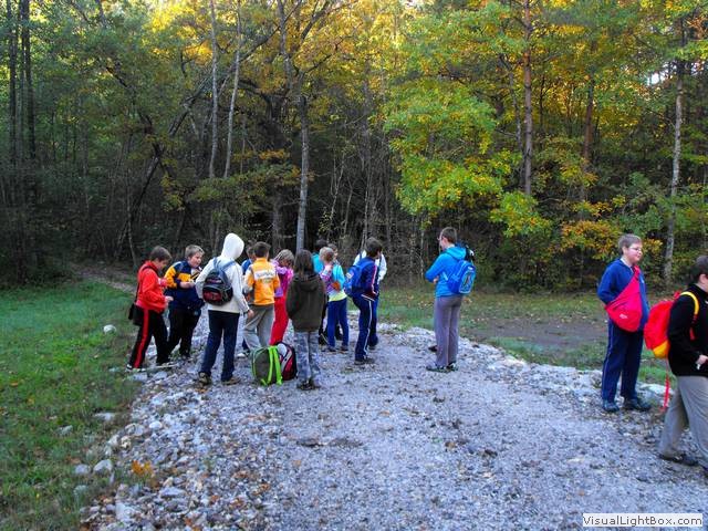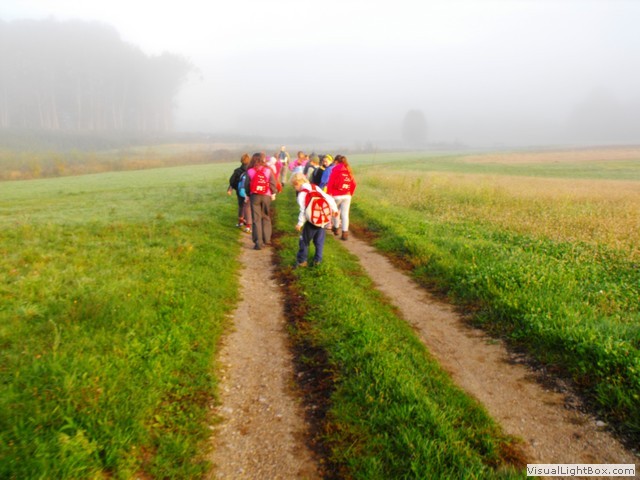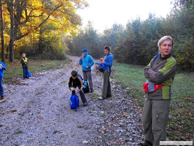 Tam so nas že čakali učenci 1. razreda. Najprej smo skupaj z njimi hodili po zelo blatni poti in prišli do gozda. Morali smo poslušati učiteljice, saj bi se lahko izgubili. Videli smo tudi nekaj gob, a te smo pustili za tiste, ki so jih prišli nabirat. Kmalu smo prišli do roba gozda in zagledali njive. Od tu naprej nogometno igrišče, ki je bilo cilj našega pohoda, več ni bilo daleč.