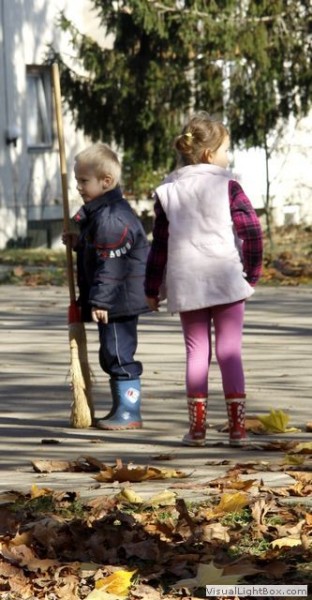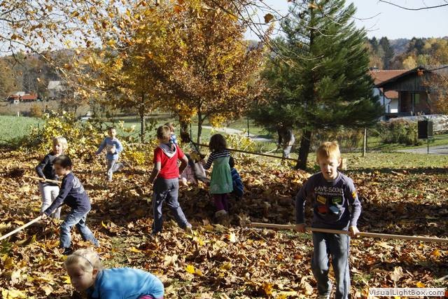 Tudi jesen 2013 je naš šolski vrt prekrila z velikimi količinami listja z dreves. Da bi hišniku olajšali delo, so se učenci prvega triletja lotili pospravljanja listja na kupe.