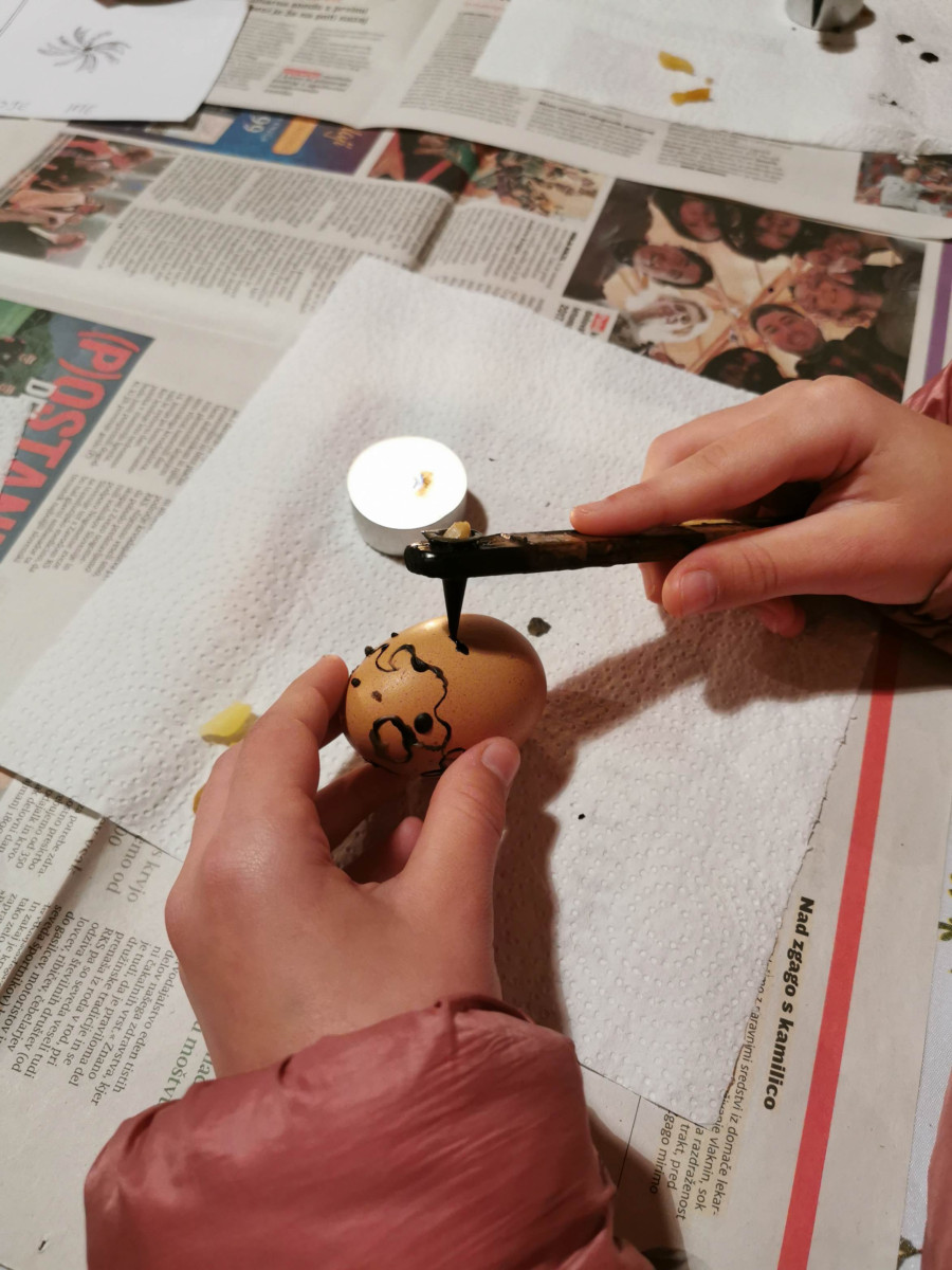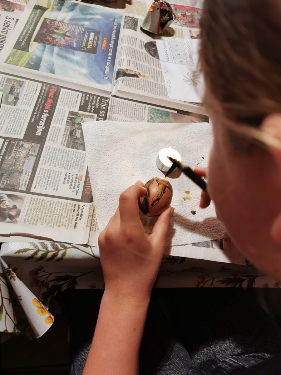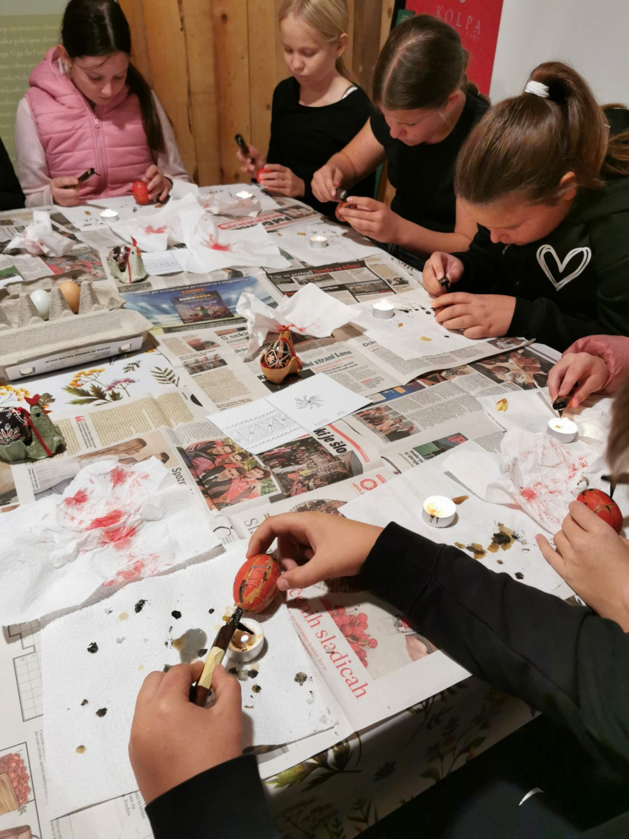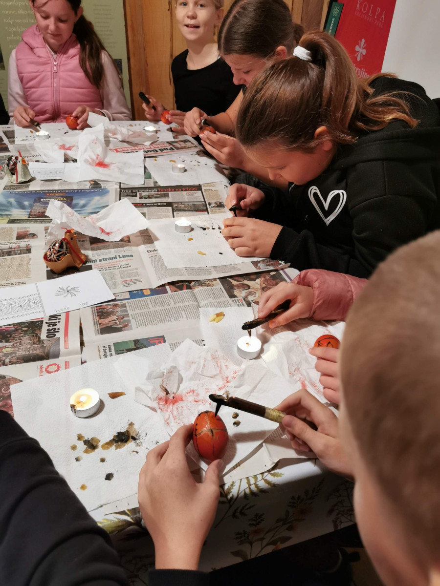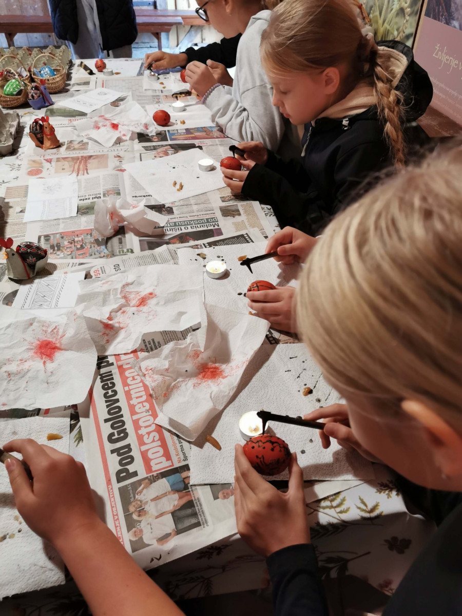 V torek, 30. 9. 2025, smo se učenci 6. in 7. razreda odpravili v Šokčev dvor v Žuničih. Prijazna gospa Vesna in gospod Jan sta nam najprej razložila kako s svojimi dejanji lahko onesnažimo naravo in tako prizadenemo živali v njej. Potem smo začeli z delom. Učenci 6. razreda smo začeli z voskom risati na pisanice, medtem ko so sedmošolci začeli z vezenjem belokranjskih vzorcev na platno za izdelavo knjižne kazalke. Bilo je zelo zabavno risati na jajce. Zelo se zahvaljujemo prijazni gospe, ki nam je omogočila da je delo potekalo gladko. Ko smo s pisanicami končali smo jih potopili v rdečo barvo, zatem pa smo lahko narisali še kakšen belokranjski vzorec. Ko smo še zadnjič porisali jajca, jih je gospa potopila v črno vodo. Ker je bilo potrebno počakati 20-40 minut da se obarvajo, so se nekateri odpravili z Janom na sprehod, kjer so našli poškodovano čebelo in jo lepo oskrbeli. Ko so se vrnili iz sprehoda, smo skupaj odcedili pisanice in si jih ogledali. Vsi smo bili ponosni nase. Kmalu je prišel še 7. razred in tudi oni so bili ponosni na svoje vzorce. Gospod Jan nam je še razložil o napadu Turkov, kako so 5- letne dečke vzeli staršem in jih vzgajali za vojake, medtem ko pa deklicam niso spletali kitk in jih niso preveč lepo rihtali, saj niso hoteli, da bi jim jih vzeli. Ta dan se nam je zdel zelo dober, saj smo v njem uživali, se učili o zgodovini Žuničev in izdelovali tradicionalne belokranjske vzorce in pisanice. Upamo, da v prihodnosti še kdaj obiščemo Šokčev dvor.