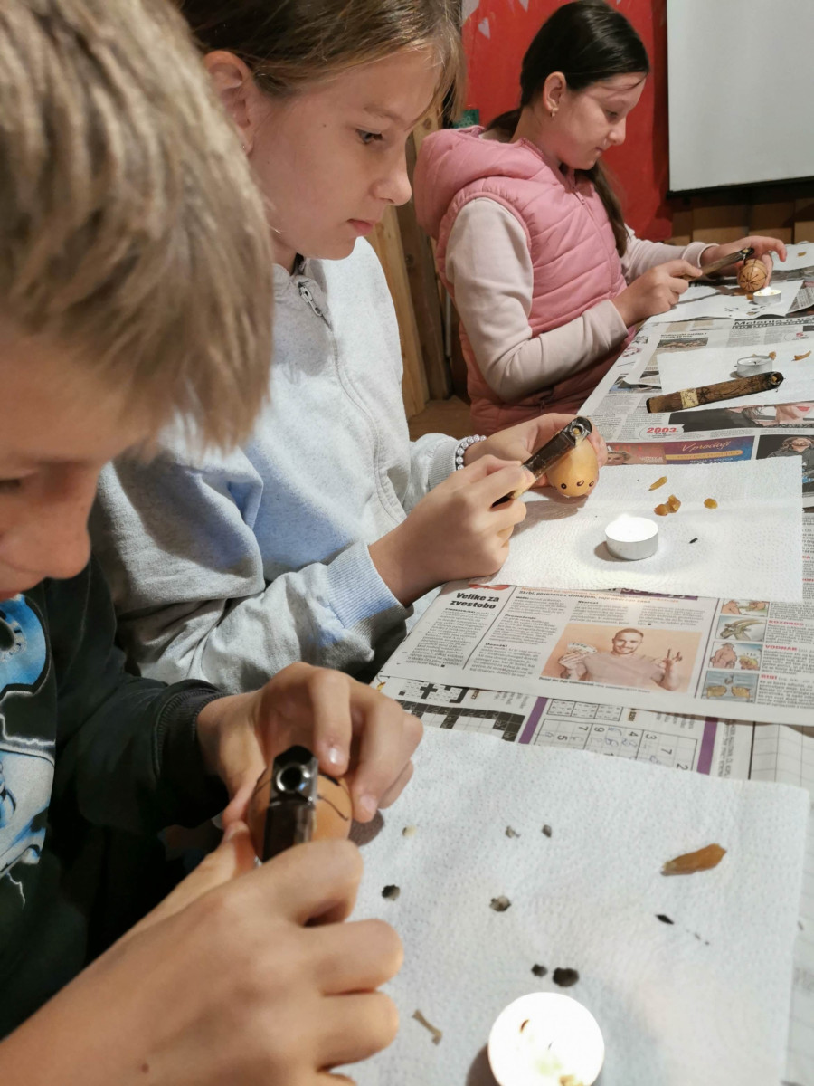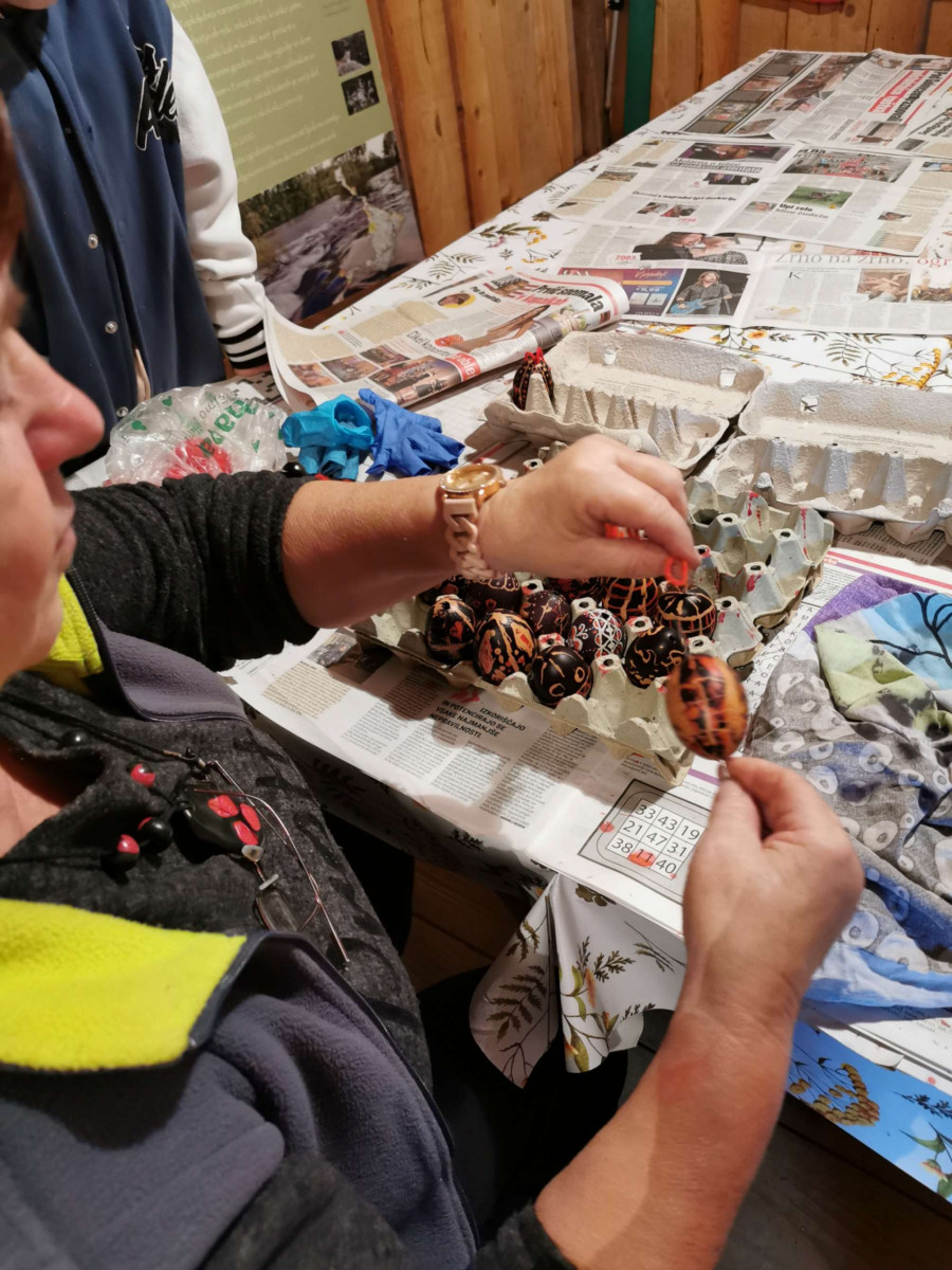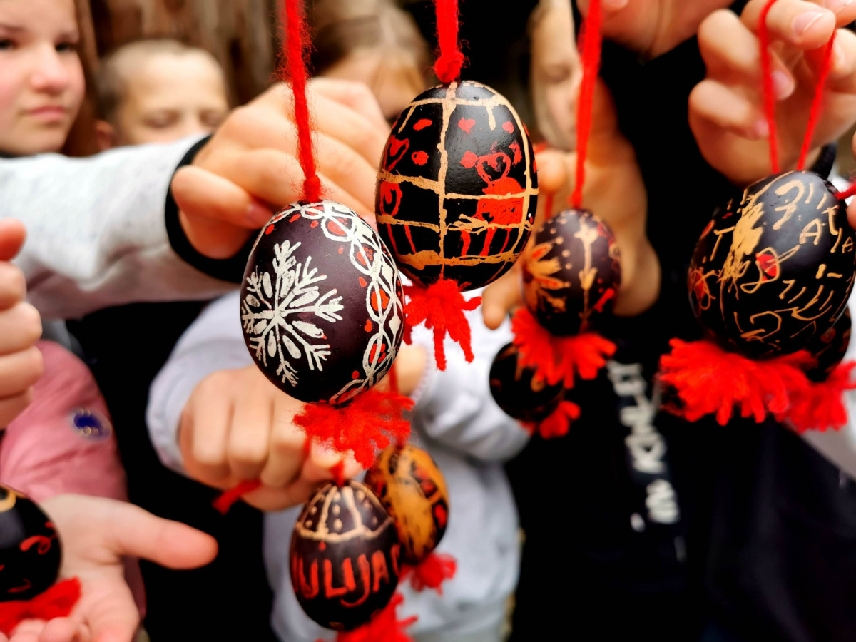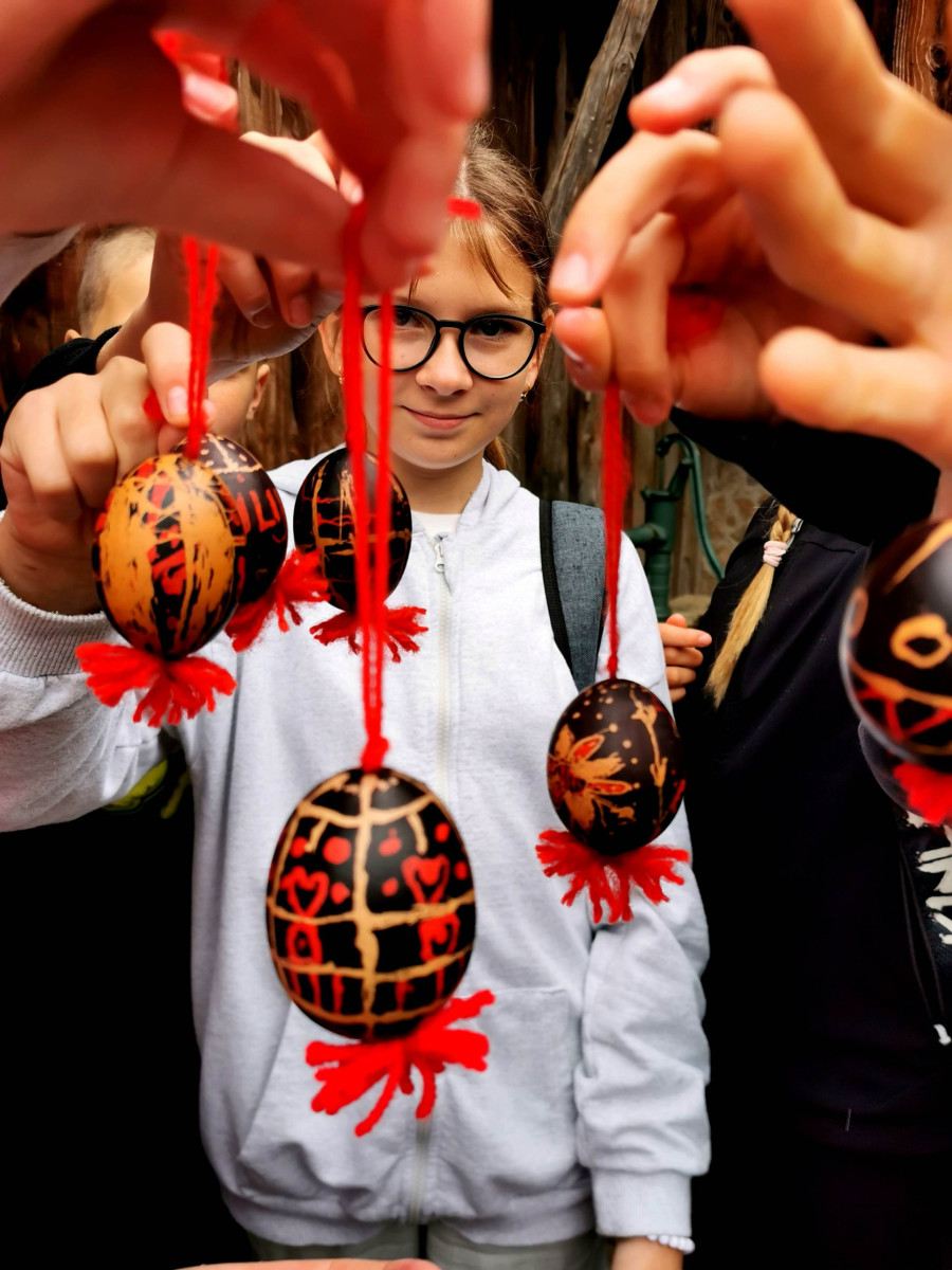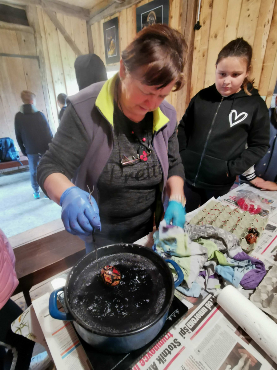 V torek, 30. 9. 2025, smo se učenci 6. in 7. razreda odpravili v Šokčev dvor v Žuničih. Prijazna gospa Vesna in gospod Jan sta nam najprej razložila kako s svojimi dejanji lahko onesnažimo naravo in tako prizadenemo živali v njej. Potem smo začeli z delom. Učenci 6. razreda smo začeli z voskom risati na pisanice, medtem ko so sedmošolci začeli z vezenjem belokranjskih vzorcev na platno za izdelavo knjižne kazalke. Bilo je zelo zabavno risati na jajce. Zelo se zahvaljujemo prijazni gospe, ki nam je omogočila da je delo potekalo gladko. Ko smo s pisanicami končali smo jih potopili v rdečo barvo, zatem pa smo lahko narisali še kakšen belokranjski vzorec. Ko smo še zadnjič porisali jajca, jih je gospa potopila v črno vodo. Ker je bilo potrebno počakati 20-40 minut da se obarvajo, so se nekateri odpravili z Janom na sprehod, kjer so našli poškodovano čebelo in jo lepo oskrbeli. Ko so se vrnili iz sprehoda, smo skupaj odcedili pisanice in si jih ogledali. Vsi smo bili ponosni nase. Kmalu je prišel še 7. razred in tudi oni so bili ponosni na svoje vzorce. Gospod Jan nam je še razložil o napadu Turkov, kako so 5- letne dečke vzeli staršem in jih vzgajali za vojake, medtem ko pa deklicam niso spletali kitk in jih niso preveč lepo rihtali, saj niso hoteli, da bi jim jih vzeli. Ta dan se nam je zdel zelo dober, saj smo v njem uživali, se učili o zgodovini Žuničev in izdelovali tradicionalne belokranjske vzorce in pisanice. Upamo, da v prihodnosti še kdaj obiščemo Šokčev dvor.