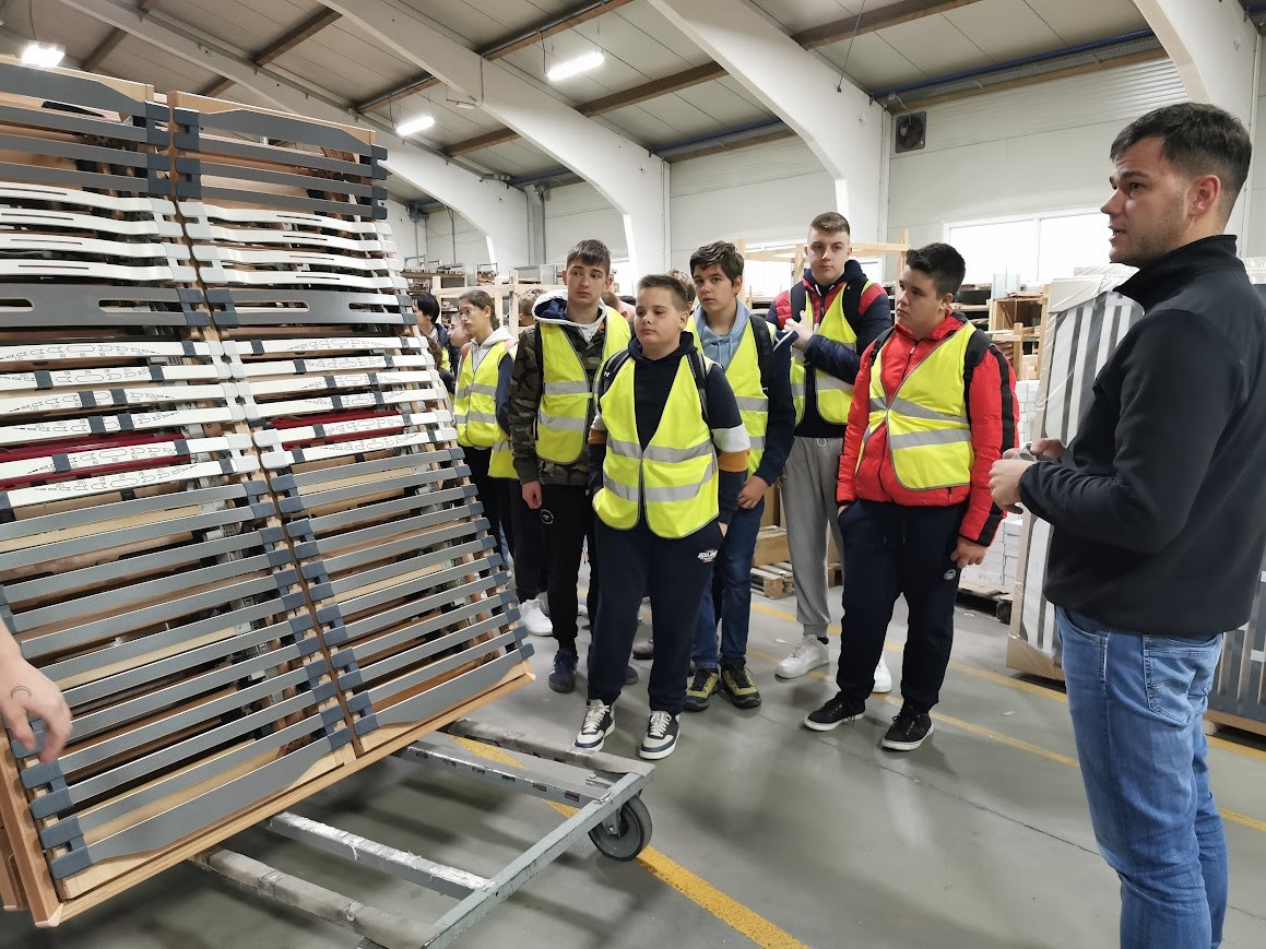 Sledil je ogled po tovarni X-Adena. V 1. sekciji smo si ogledali obdelavo lesa v različne produkte, v 2. sekciji kako nastane plastika in zakaj je vzmetenje pomembno, v 3. sekciji pa smo si ogledovali umetno usnje in peno.