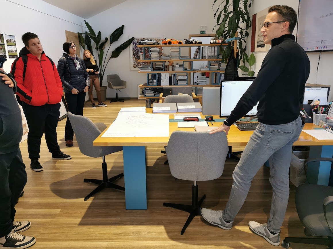 Nato smo se odpravili proti Arhitekturi Vrščaj. Arhitekt nam je predstavil njegovo delo ter projekte na katerih dela, povedal nam je katere vse izobrazbe potrebuješ in kaj vse je treba narediti, da prideš na njegovo pozicijo. V isti stavbi smo si ogledali še kakšno delo imajo električarji pri EMV Vrščaj.
