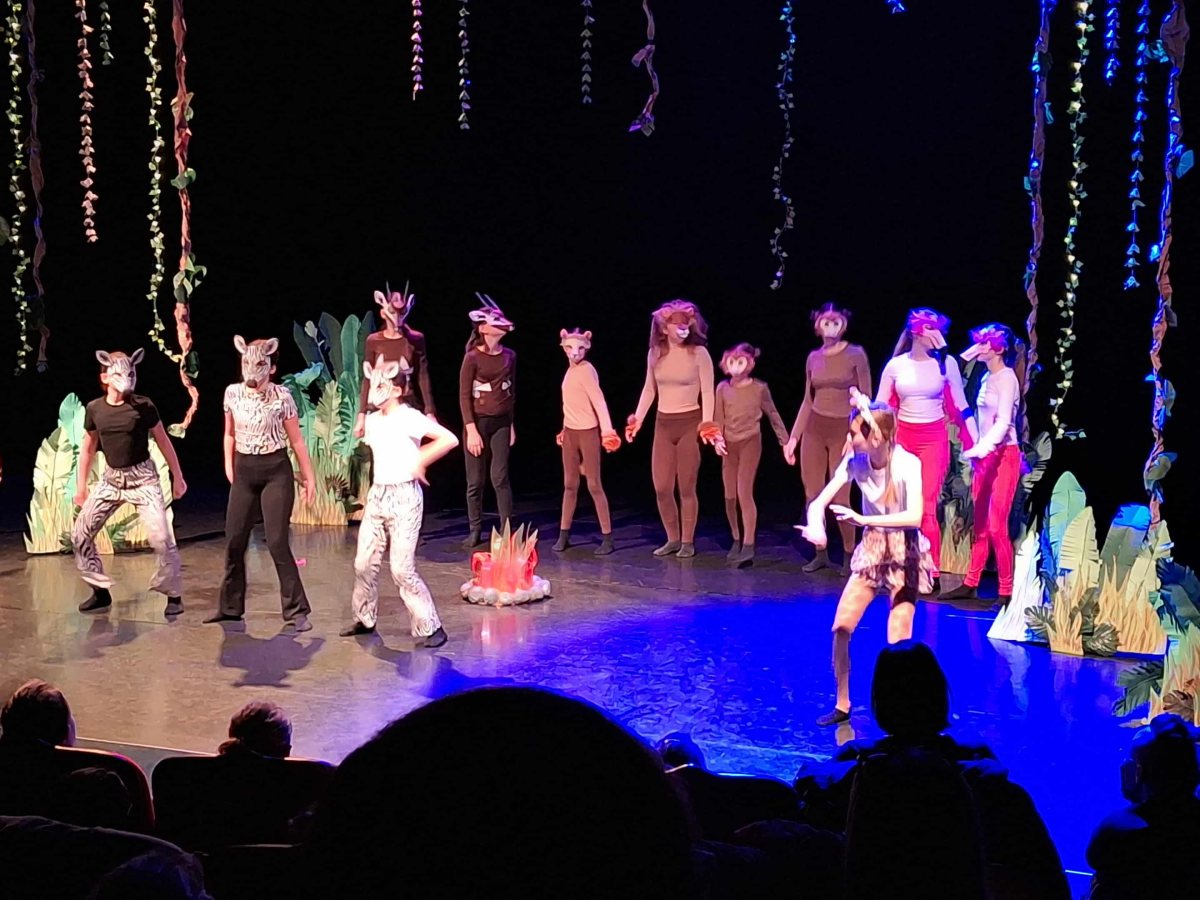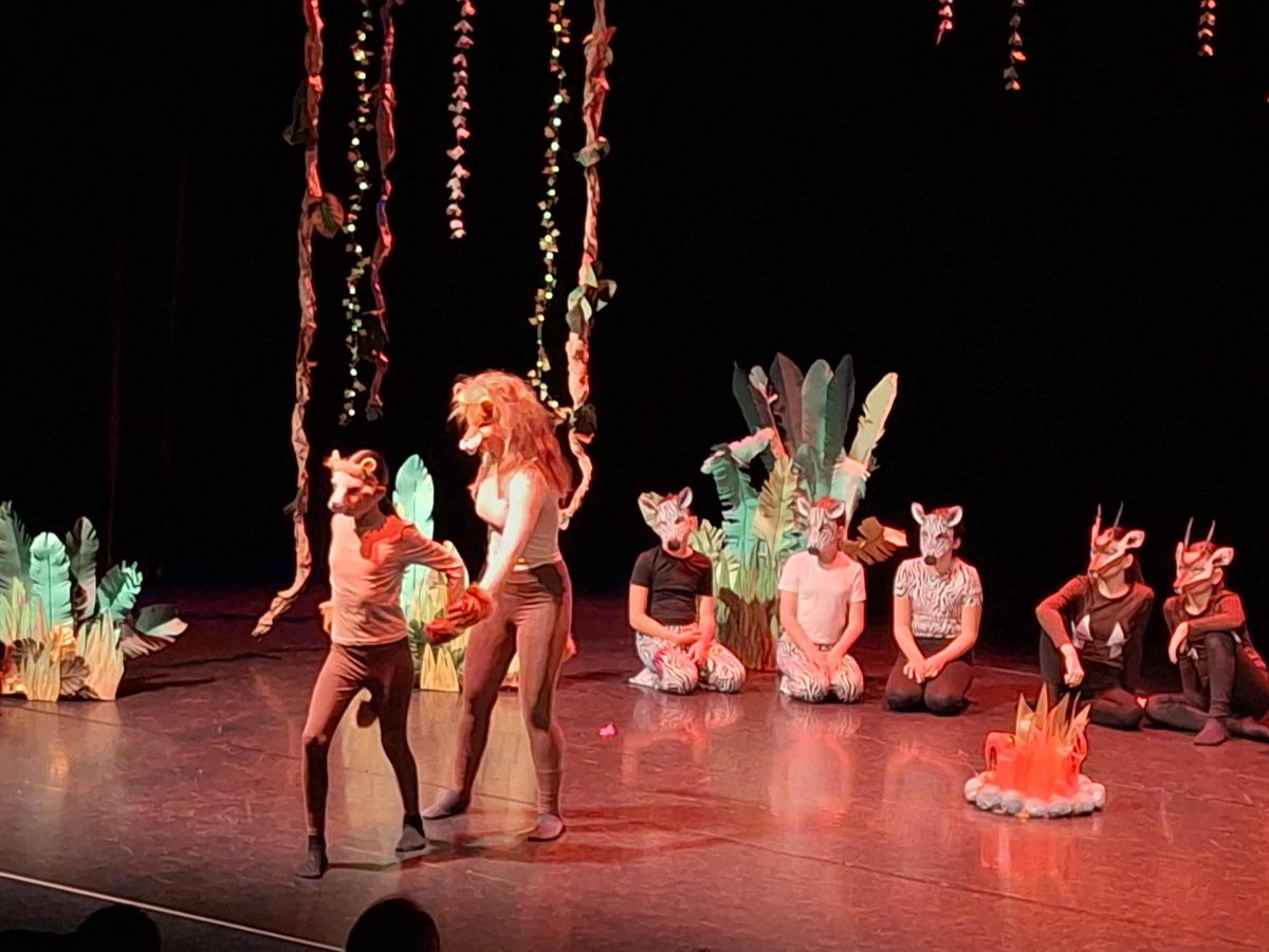 Tam smo si ogledali glasbeno – gledališko predstavo Žirafe ne znajo plesati. V predstavi nastopajo: 3 zebre, 2 flaminga, 2 opici, 2 gazeli, 2 leva in žirafa.
