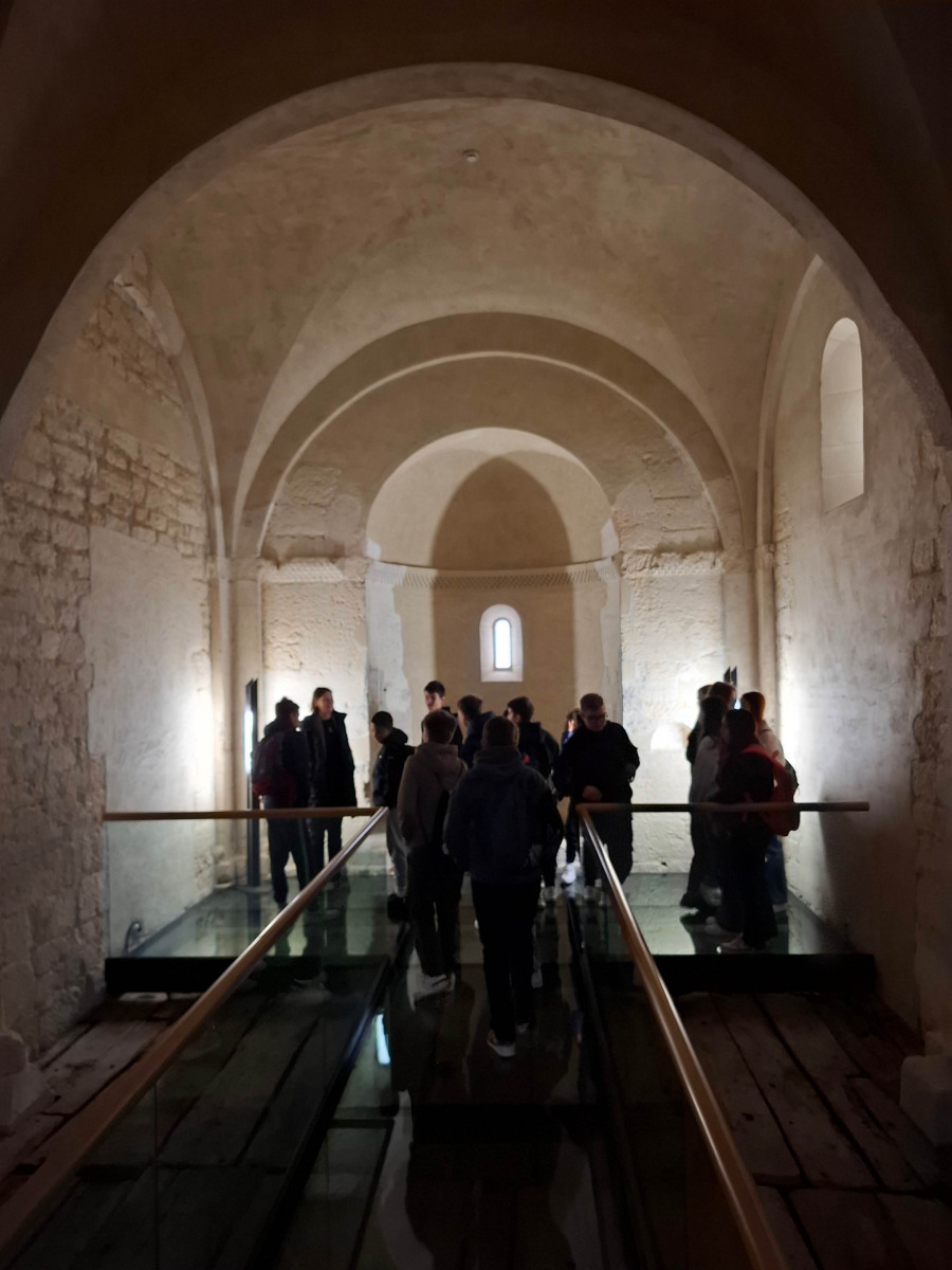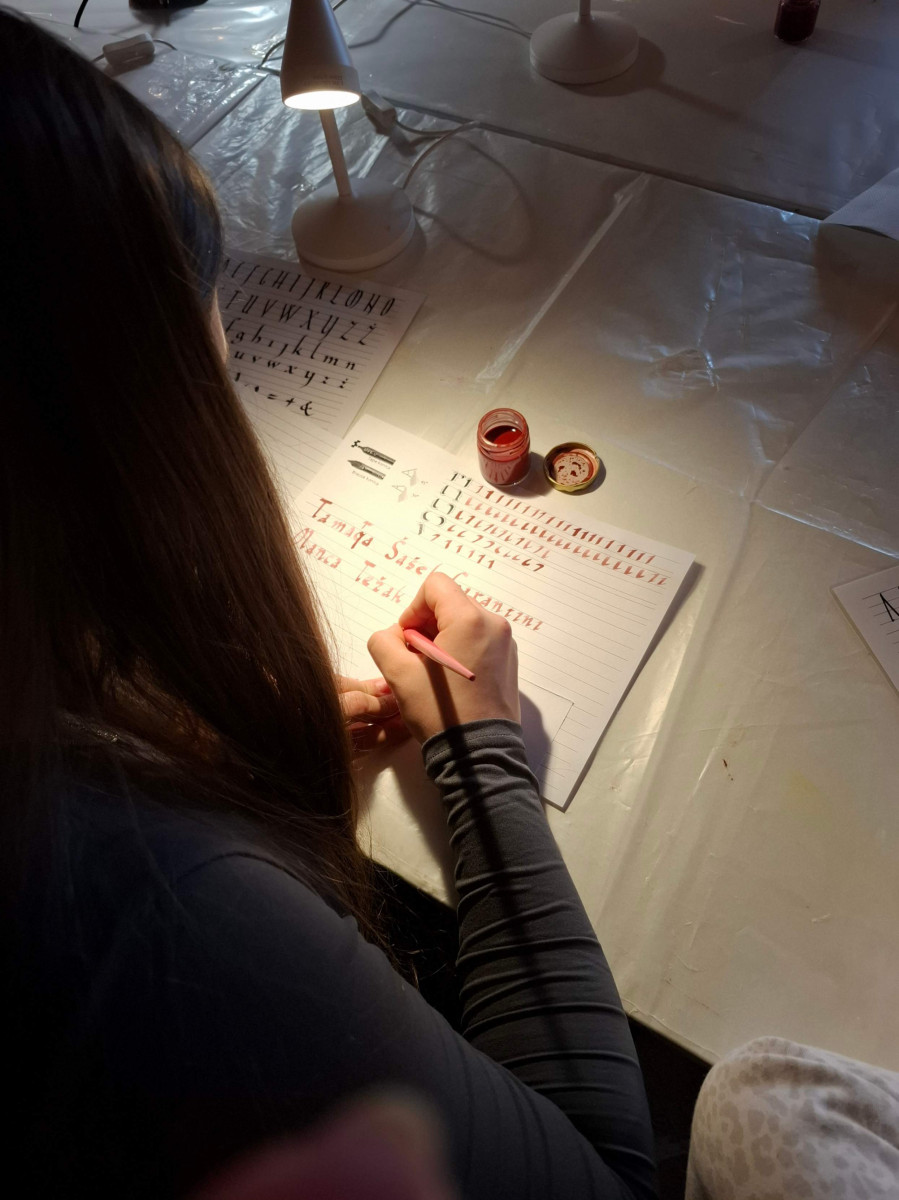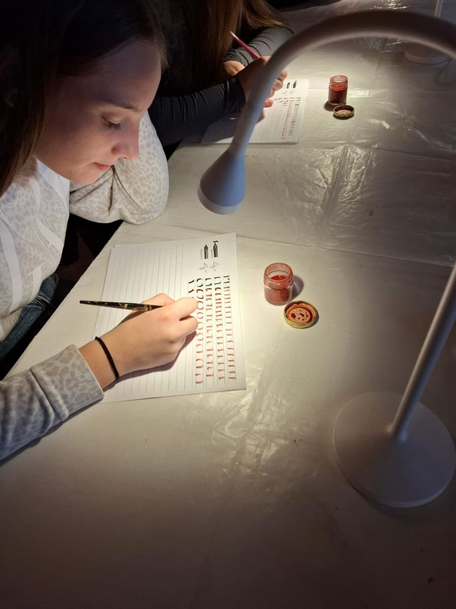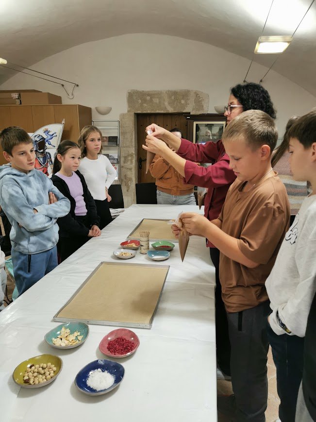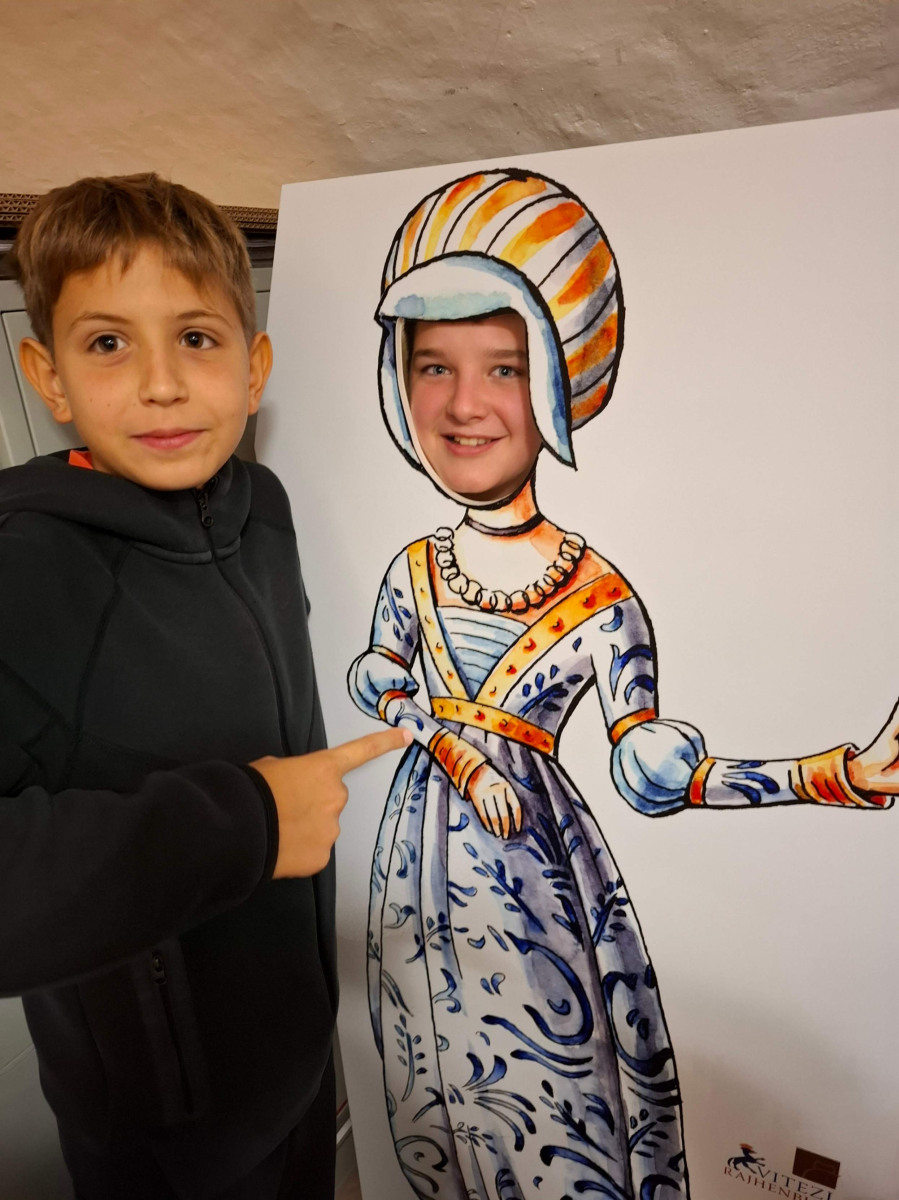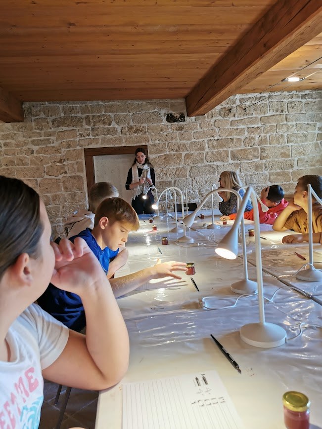 Nato smo se skupini zamenjali, mi smo šli na ogled gradu, 8. razred pa na ogled izdelave čokolade. V gradu je bilo veliko zanimivih slik. Gospa kustosinja nam je povedala o menihih, ki so živeli v zelo majhnih sobicah in cel dan molili. Nato smo imeli delavnico kaligrafije, kjer smo pisali s posebnimi peresi. Naučili smo se napisati svoje ime in priimek s srednjeveško pisavo karolinško minuskulo. Poslovili smo se in se odpeljali na pico in potem odšli na karting stezo.