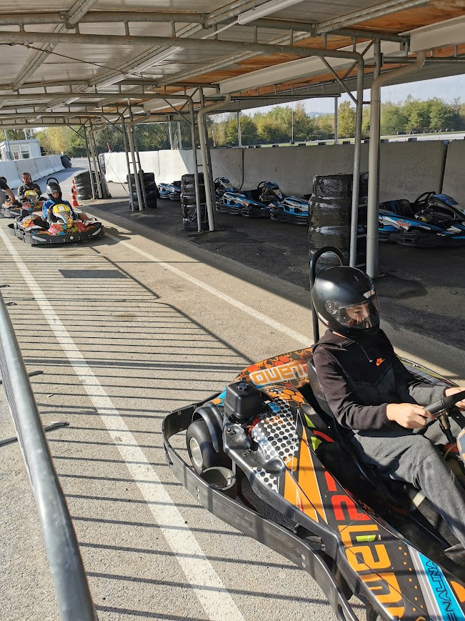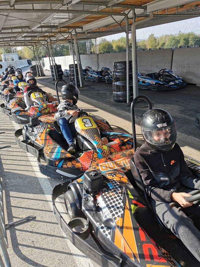 V Racelandu smo se razdelili v pet skupin in po takem vrstnem redu smo se tudi vozili z gokarti. Bilo je zelo hitro a tudi nadvse zabavno.