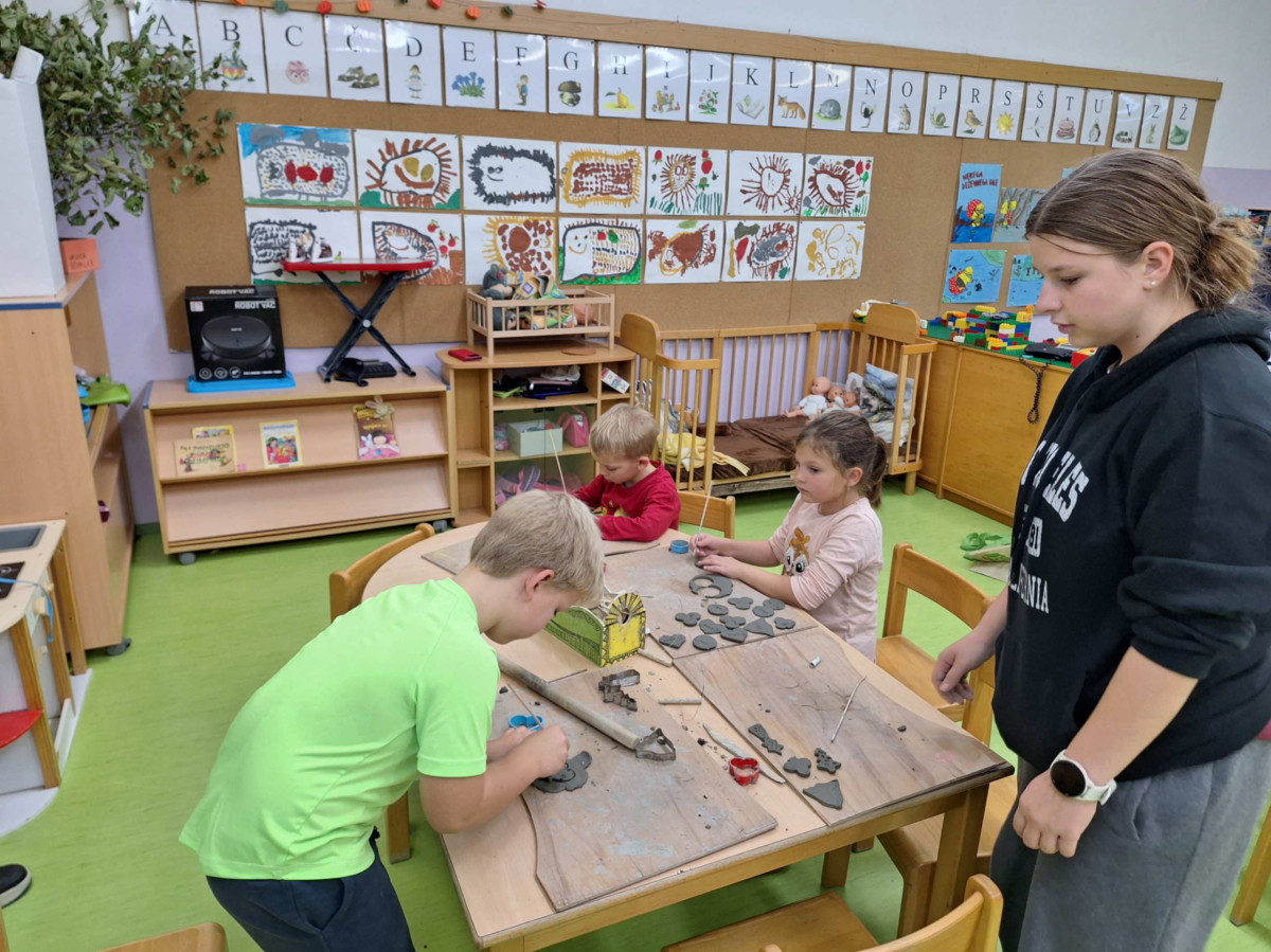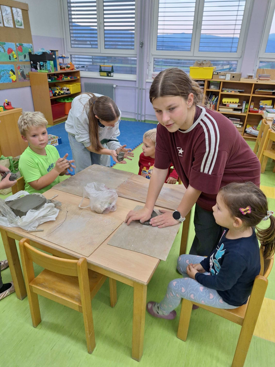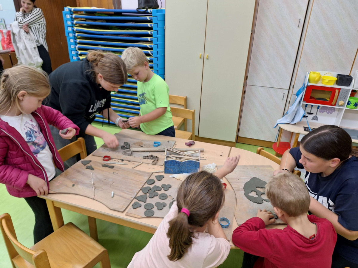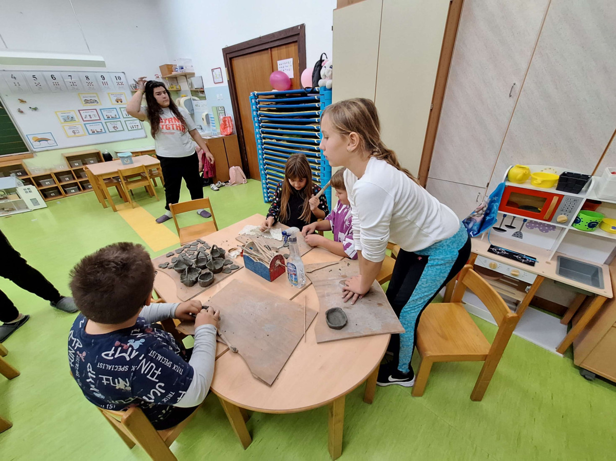 V četrtek, 6. 11., so učenci 9. razreda izvedli delavnice za otroke razredne stopnje in njihove mlajše sorojence, medtem ko so bili starši na predavanju in govorilnih urah. Devetošolci so pri vhodu prevzeli otroke, si zabeležili podatke staršev in jih odpeljali na delavnico, ki so si jo otroci izbrali. Na voljo so imeli športno-gibalno delavnico, ustvarjalno in »razgibajmo možgančke«, kjer so otroci lahko reševali domače naloge, se učili ali igrali različne namizne igre. Na ustvarjalni delavnici so učenci navdušeno ustvarjali z glino, izdelke pa bomo spekli v novi peči za glino, da jih bodo otroci lahko odnesli domov. Vse delavnice so izvajali devetošolci, zraven pa so bili prisotni tudi učitelji, ki niso razredniki. Ob prevzemu otrok so starši lahko namenili prostovoljne prispevke devetošolcem za potrebe valete in zaključnega izleta. S tem so učenci prešli od načrtovanja dejavnosti, kar so izvedli v okviru ZUIP ur v septembru in oktobru, do izvedbe le-teh. Dejavnosti v okviru projekta ZUIP so bile izvedene v okviru poziva JP Mladi, ki ga financira javna agencija SPIRIT Slovenija ob finančni podpori Ministrstva za gospodarstvo, turizem in šport.