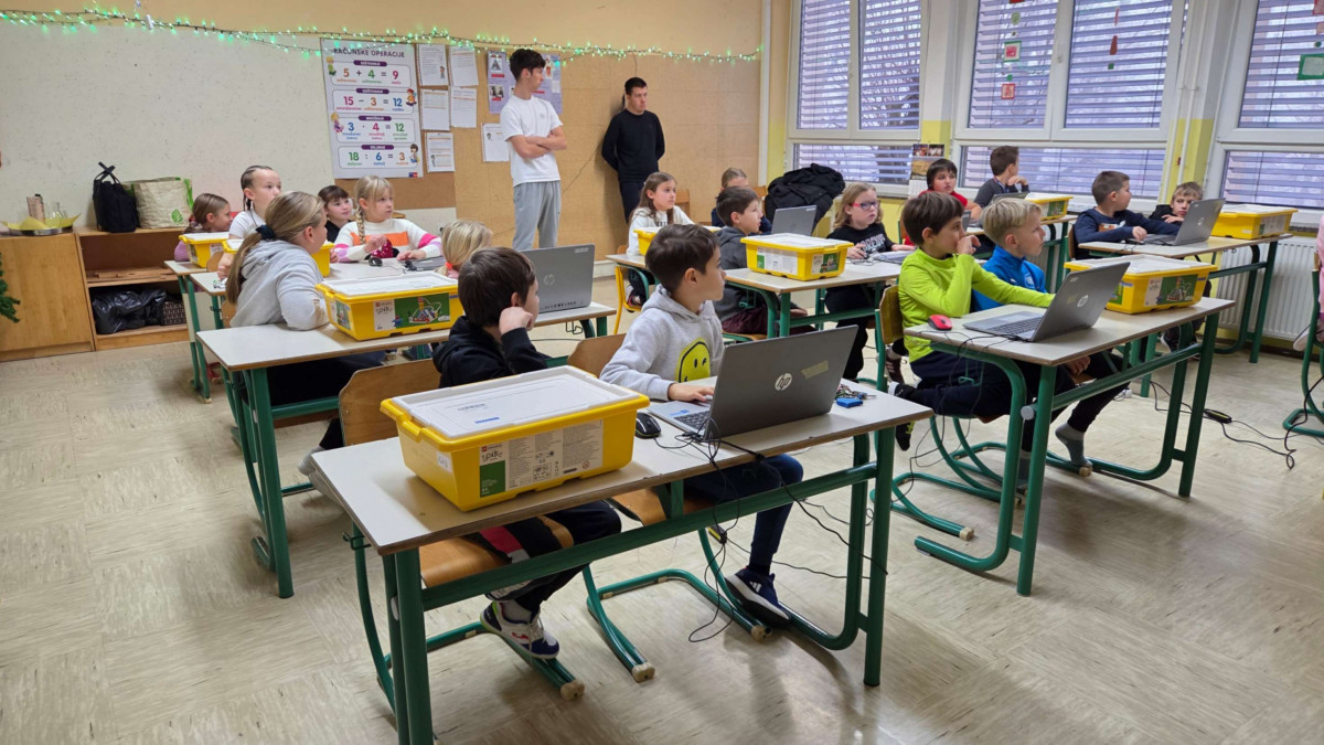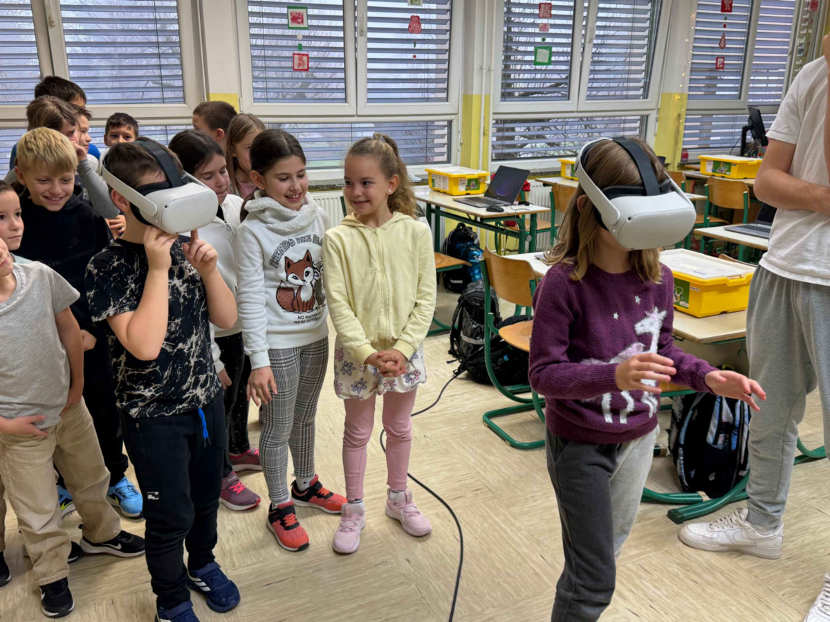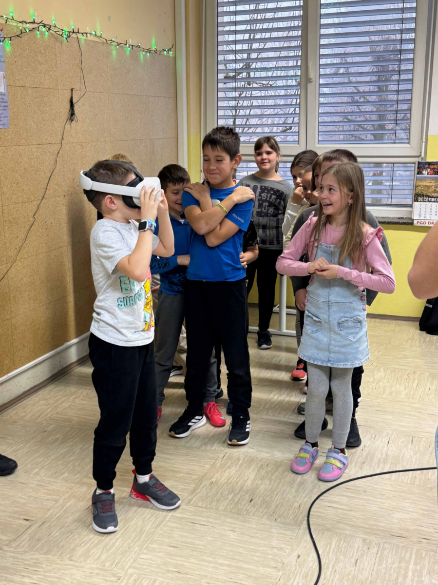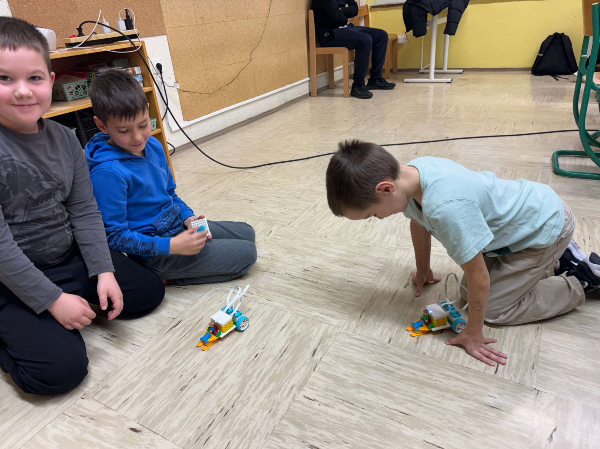 V sredo, 3. grudna 2025, smo imeli učenci četrtega razreda del pouka robotiko. Uvodoma smo se naučili štiri osnovne stvari: kako se pripravi senzor barv, kako se prižge motor in luč na robotu ter nekaj osnov programiranja. Nato smo morali zgraditi svoje snežne sani in jih na računalniku programirati. Sledile so dirke s snežnimi sanmi, ki so bile napete in hkrati prav zabavne. Za zaključek smo bili z VR (virtualna resničnost) očali v vesolju in pod nami je bila Zemlja. Vse se je zdelo zelo resnično.
