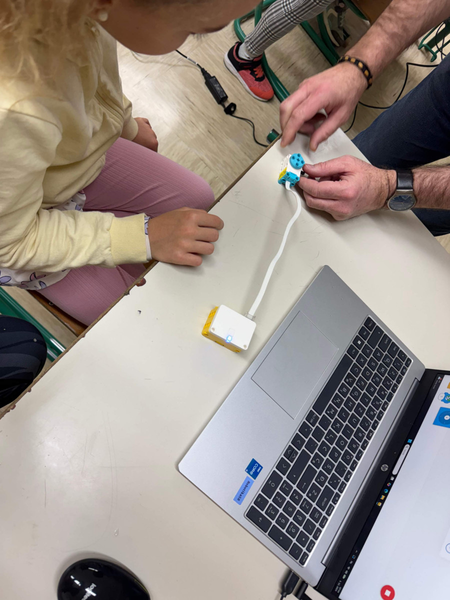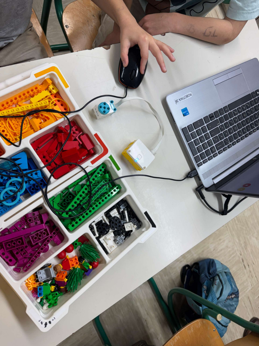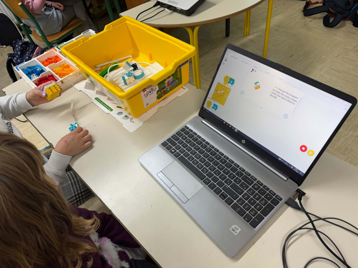 Danes, 3. 12 .2025, smo imeli dve šolski uri tehniški dan na temo robotike. Po malici smo odšli v učilnico 5. razreda. Tam sta nas pričakala dva fanta iz srednje računalniške šole ter učitelj robotike. Posedli smo se po dva za eno klop. Na klopeh so bili računalniki ter škatle lego kock za robotiko. Na računalniku smo imeli aplikacijo Scratch, na katero smo kliknili in pričeli z delom. Naredili smo nekaj preizkusov, v katerih smo spoznali, kako se uporabljajo stvari.