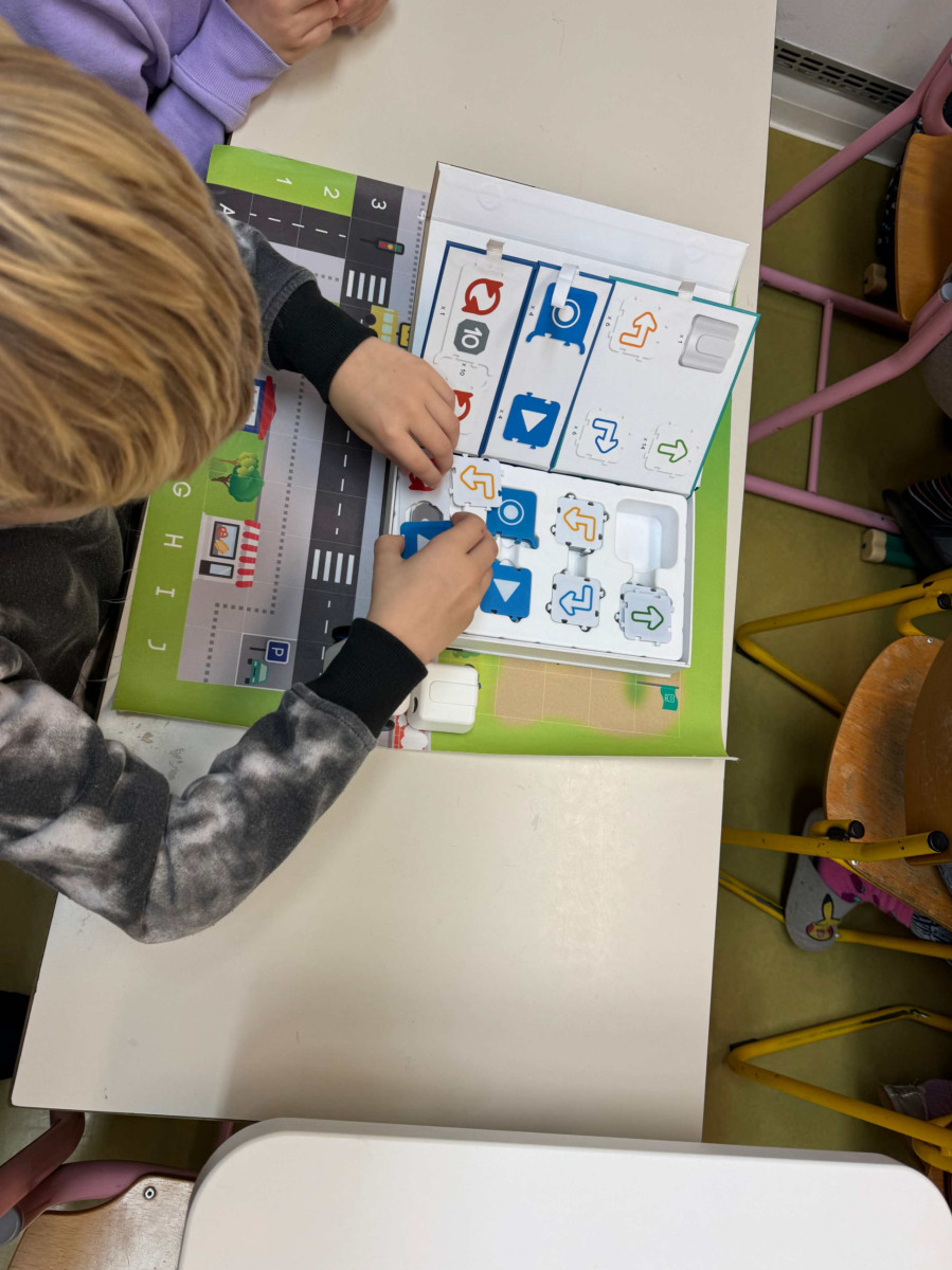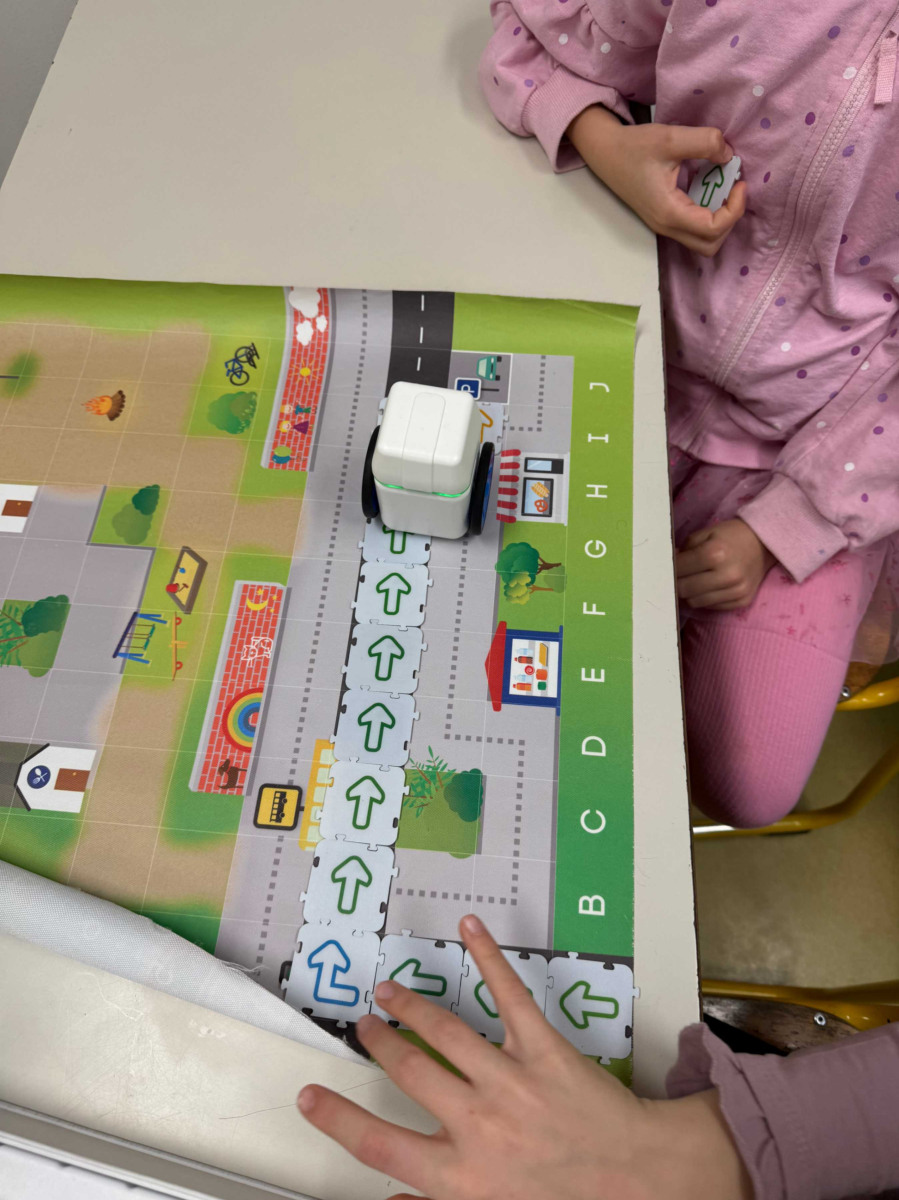 V torek, 23. 12. 2025, smo imeli tehniški dan. Ga. Polona nam je razdelila robotek in kartončke, ki smo jih polagali po tleh. Sledil jim je robotek in opravil določeno pot.