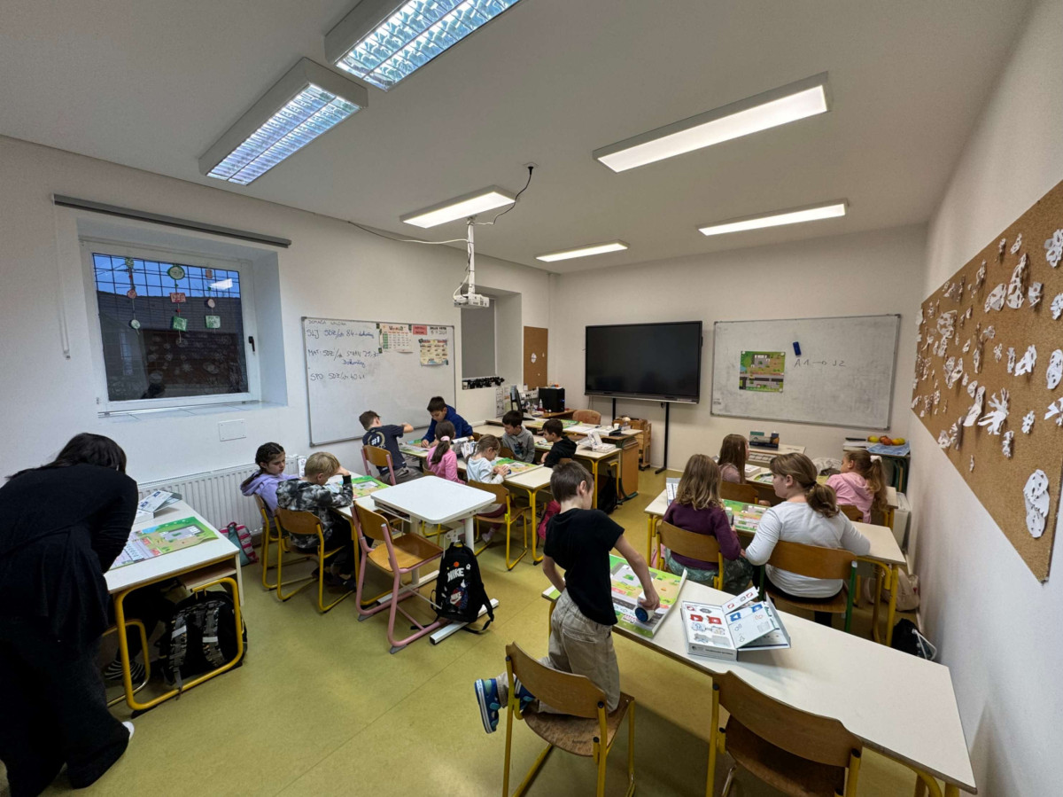 V torek, 23. 12. 2025, smo imeli tehniški dan. Prišla je ga. Polona in nas poučila o kuborobotiki. Povedala je, za kaj vse danes uporabljamo robote in katere vrste robotov obstaja v vsakdanjem življenju. Naše robotke smo sami vodili, tako da smo sestavljali ploščice poti, ki jo morajo opraviti. Spoznali smo veliko stvari, ki jih prej nismo vedeli. Pasu smo dajali ukaze, on pa je usmeril robotka. Pozneje smo oblekli naše robotke. Vsi smo se ob tem zabavali. Še plakat, ki smo ga za delo uporabljali, nam je gospa Polona na koncu pustila v razredu.