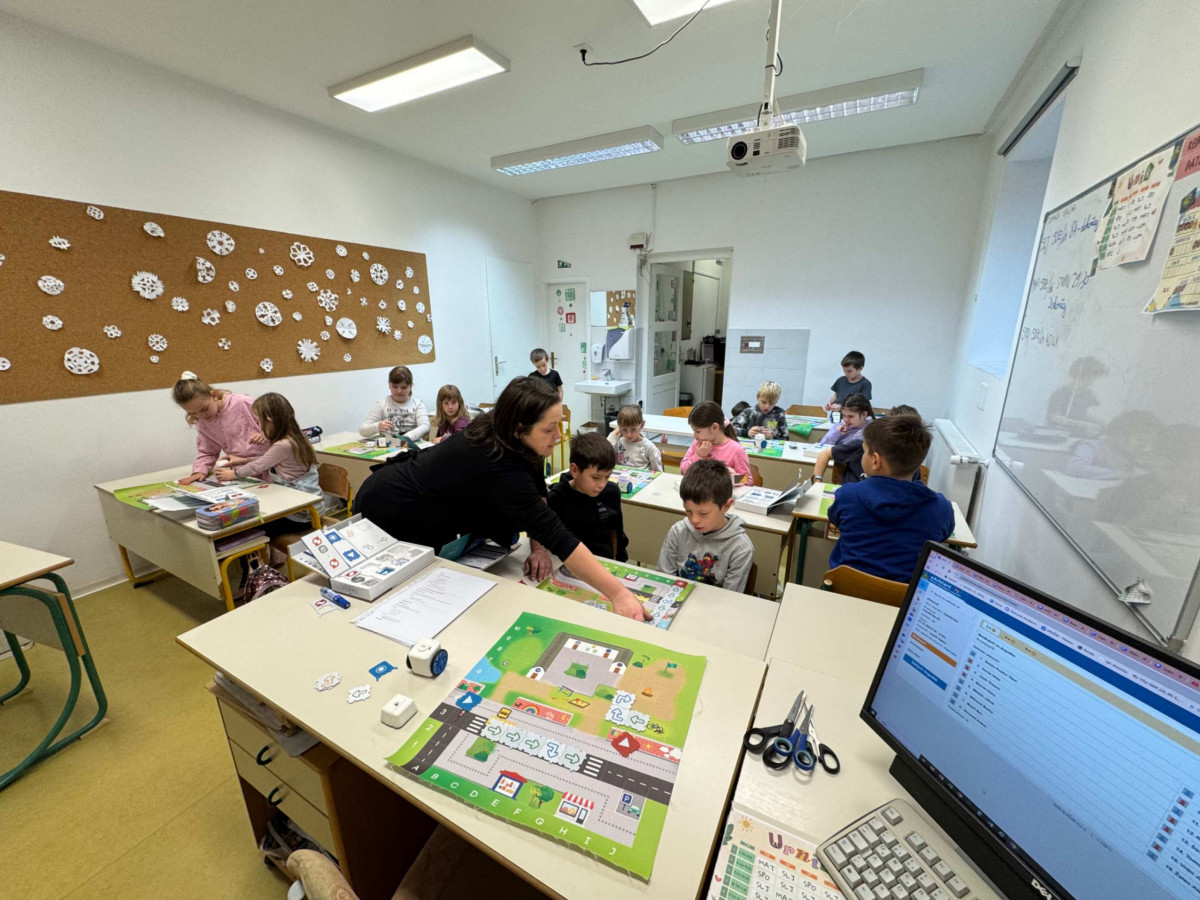 V torek, 23. 12. 2025, smo imeli tehniški dan. K nam je prišla ga. Polona. Povedala nam je, da robot dela namesto človeka, vendar ne zna razmišljati- Zanj razmišlja človek in ga nato sprogramira. Roboti ljudem pomagajo. Tudi sami smo programirali robote – ustvarjali smo pot, ki jo mora opraviti. Sam je znal iti nato po tej poti in jo tudi posnel, da je pot poznal tudi brez ukazov spodaj. Lahko je šel po poti večkrat. Bilo je zelo zanimivo delati z robotki.