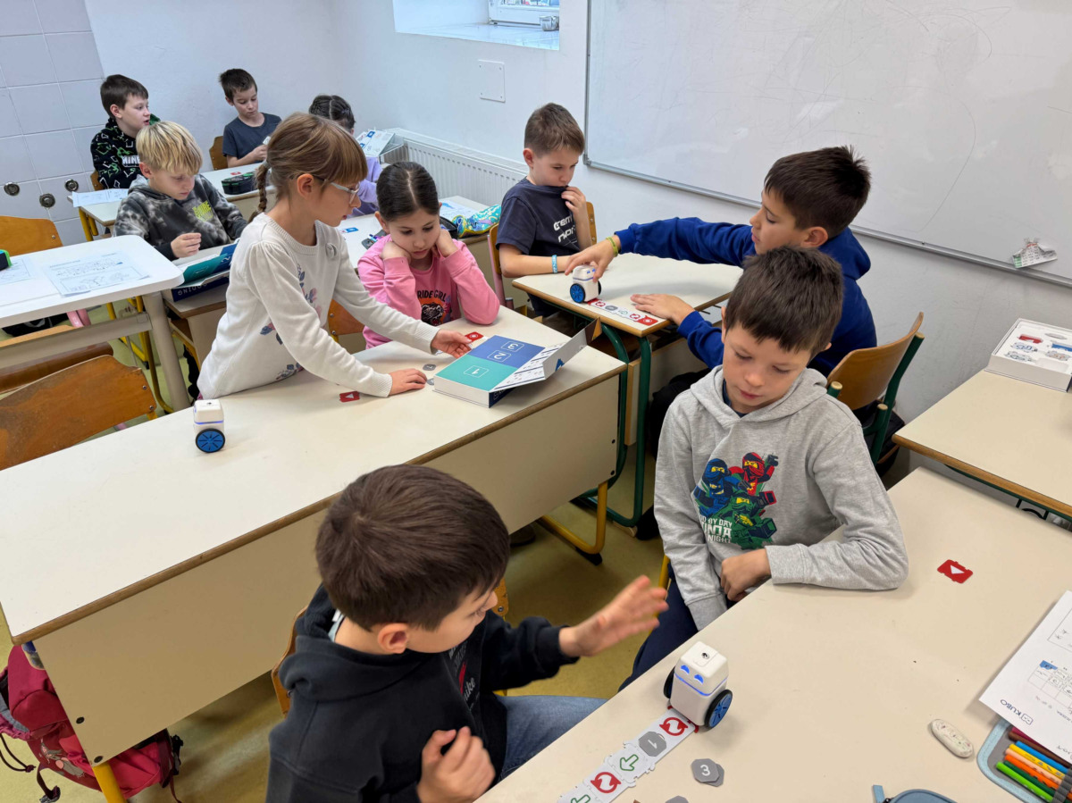 V torek, 23. 12. 2025, smo imeli učenci 3. r. tehniški dan. Ga. Polona nas jemalo podučila o kuborobotkih. To so roboti, ki jim daješ ukaze in jih programiraš. Lahko z dvema karticama. Ko ga posnameš, gre po ukazih, ki si jih je predhodno posnel.