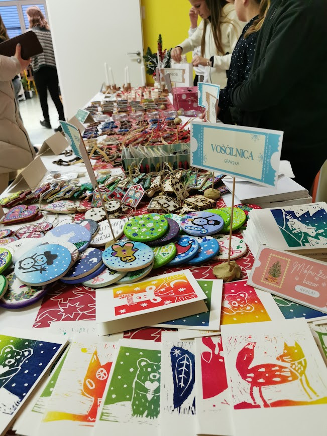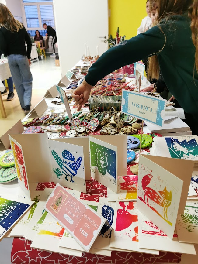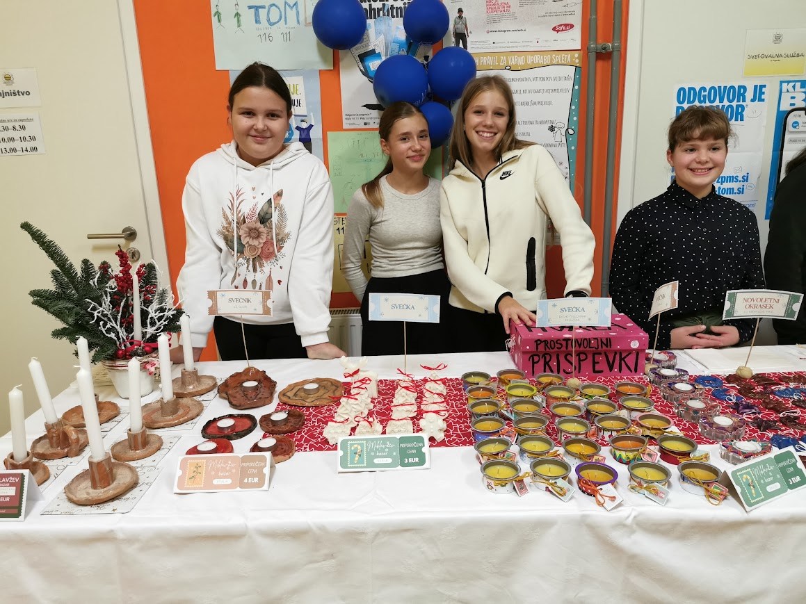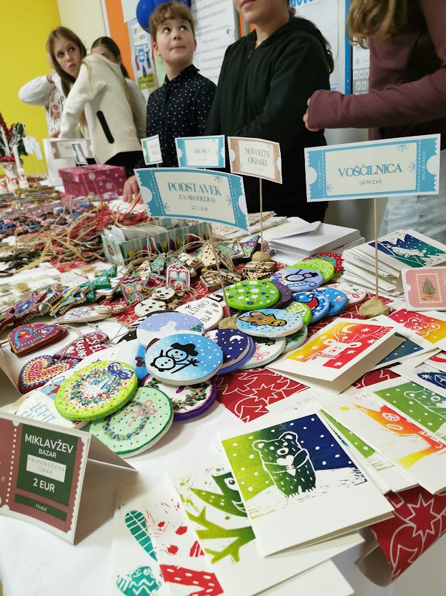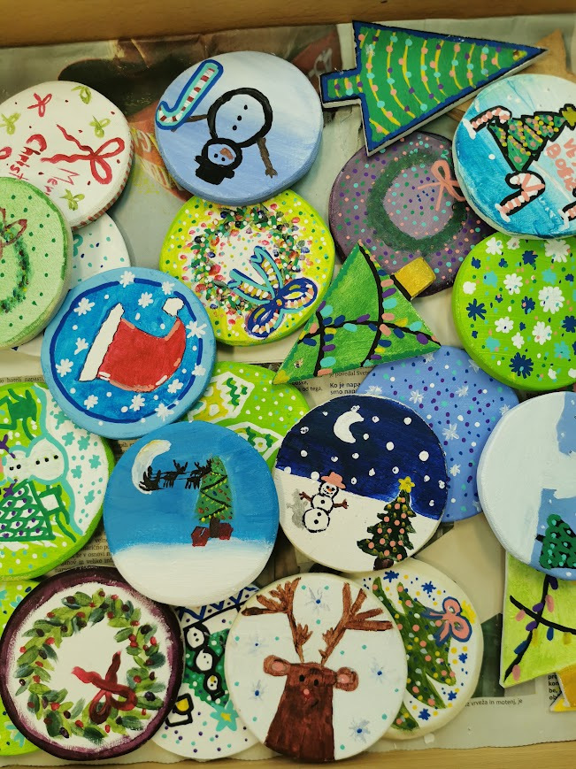 Pri izbirnem predmetu likovno snovanje 1, smo učenke 7. razreda v novembru in decembru izdelovale izdelke za miklavžev bazar in darila za naše upokojene učitelje in delavce šole. Vse dejavnosti so potekale v okviru projekta Varno in spodbudno učno okolje, saj smo pri delu sodelovale, si pomagale, spoštovale druga drugo in se učile odgovornega ravnanja z materiali ter orodji. Učilnica je bila prostor, kjer smo se počutile sprejete, varne in ustvarjalne, kar nas je še dodatno motiviralo za delo.