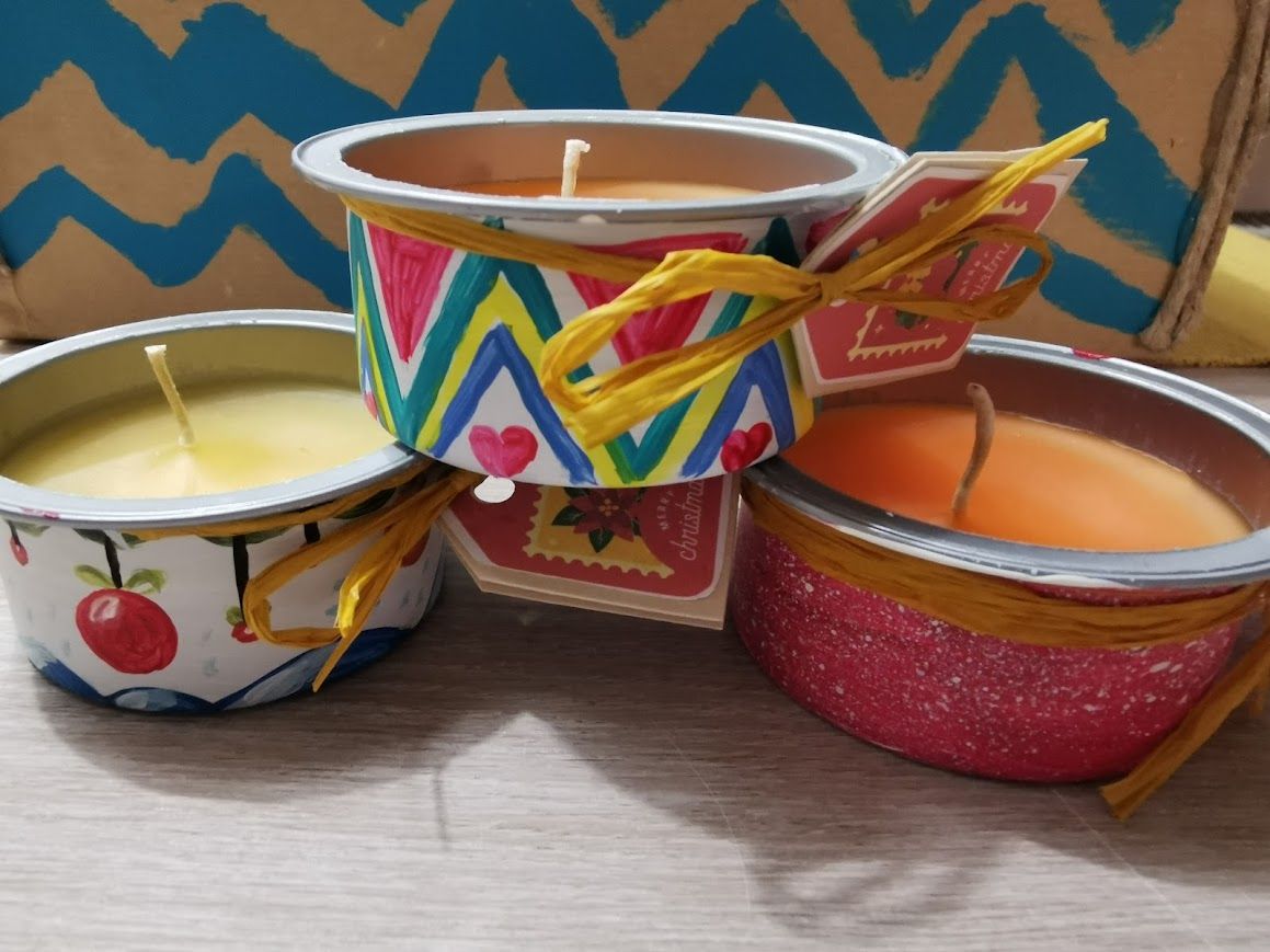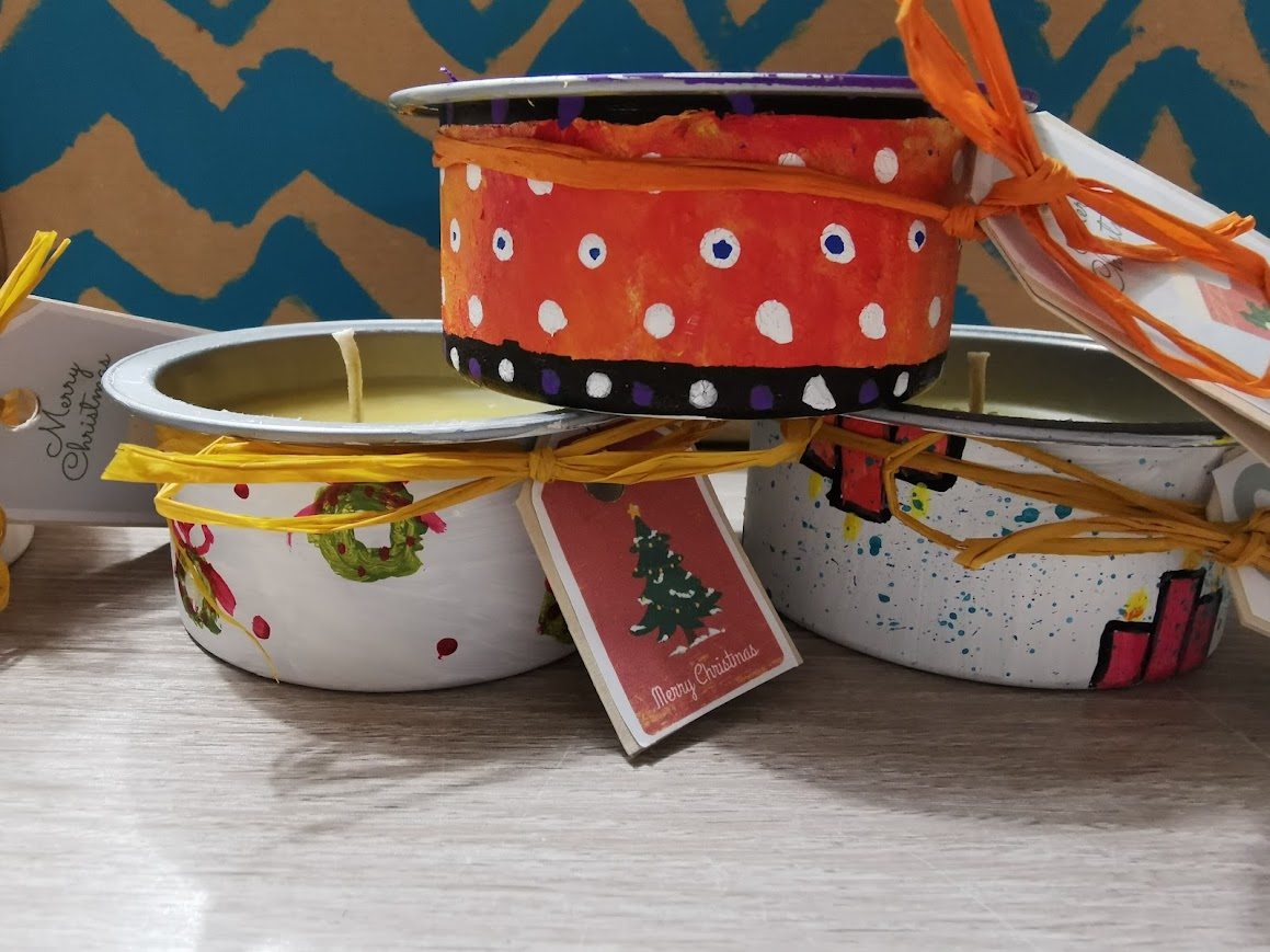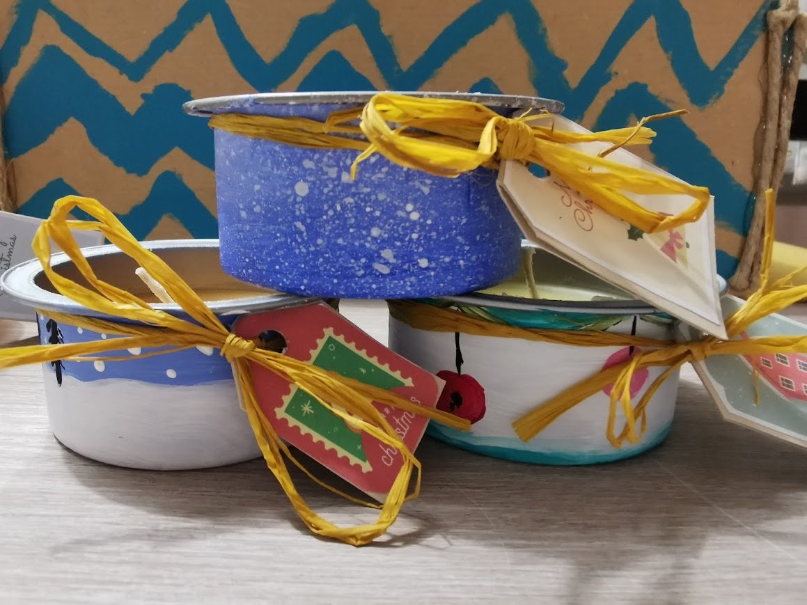 Izdelovale smo svečke, vlile smo jih v konzerve od tune, ki smo jih prinesle od doma. Posodico smo od zunaj najprej poslikale z različnimi božično-novoletnimi motivi, nato pa smo vanjo vlile vosek. Tako so nastale reciklirane svečke.