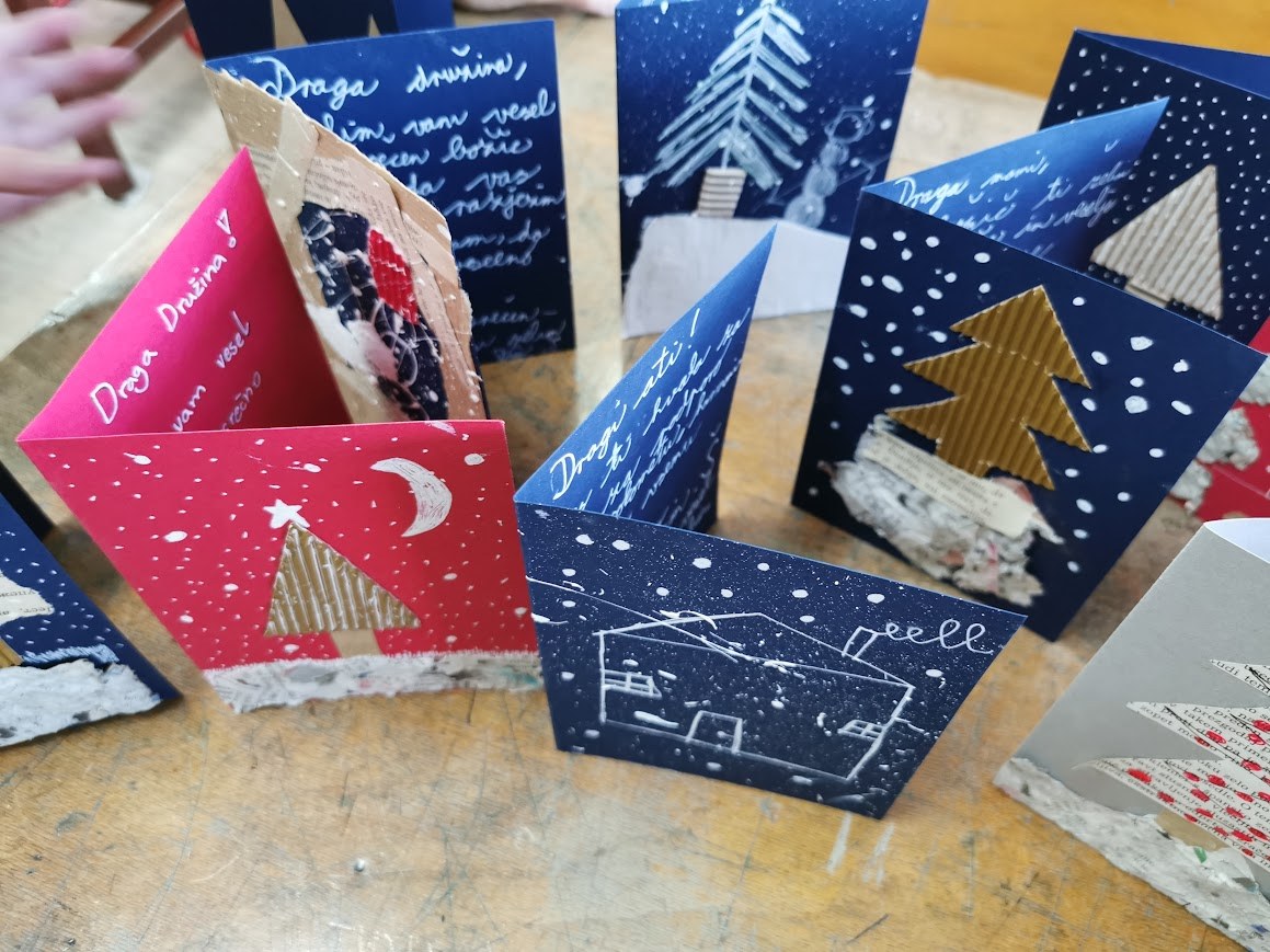 Bilo je zelo zanimivo in lepo. Izdelali smo veliko lepih voščilnic. V varnem in spodbudnem učnem okolju smo se igrivo učili, razvijali domišljijo in ustvarjalnost, sodelovali med seboj ter ustvarili nekaj lepega za druge.