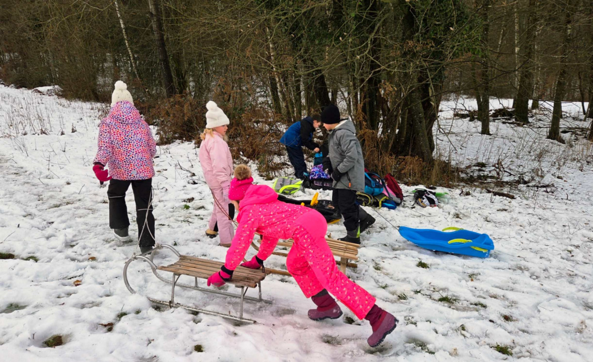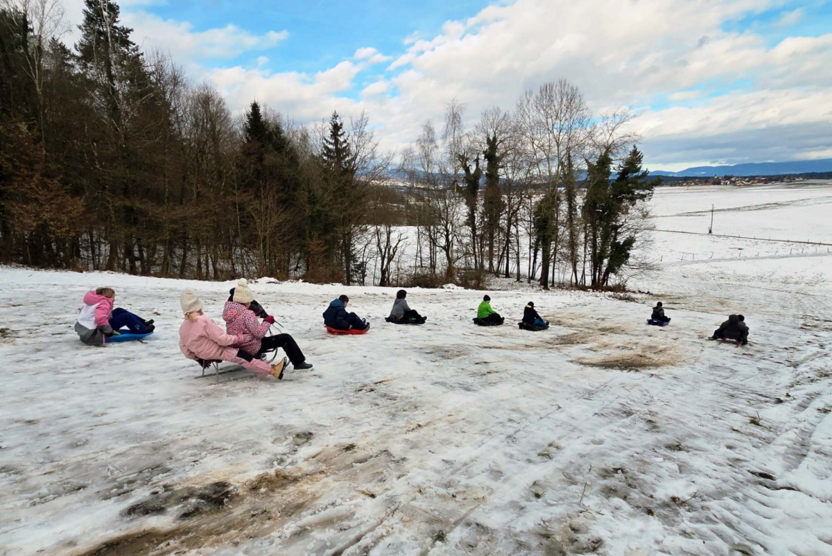 Danes, 14. 1. 2026, smo imeli učenci tretjega in četrtega razreda zimski športni dan. Nekateri so odšli na Gače na smučanje, ostali pa smo se šli sankat.