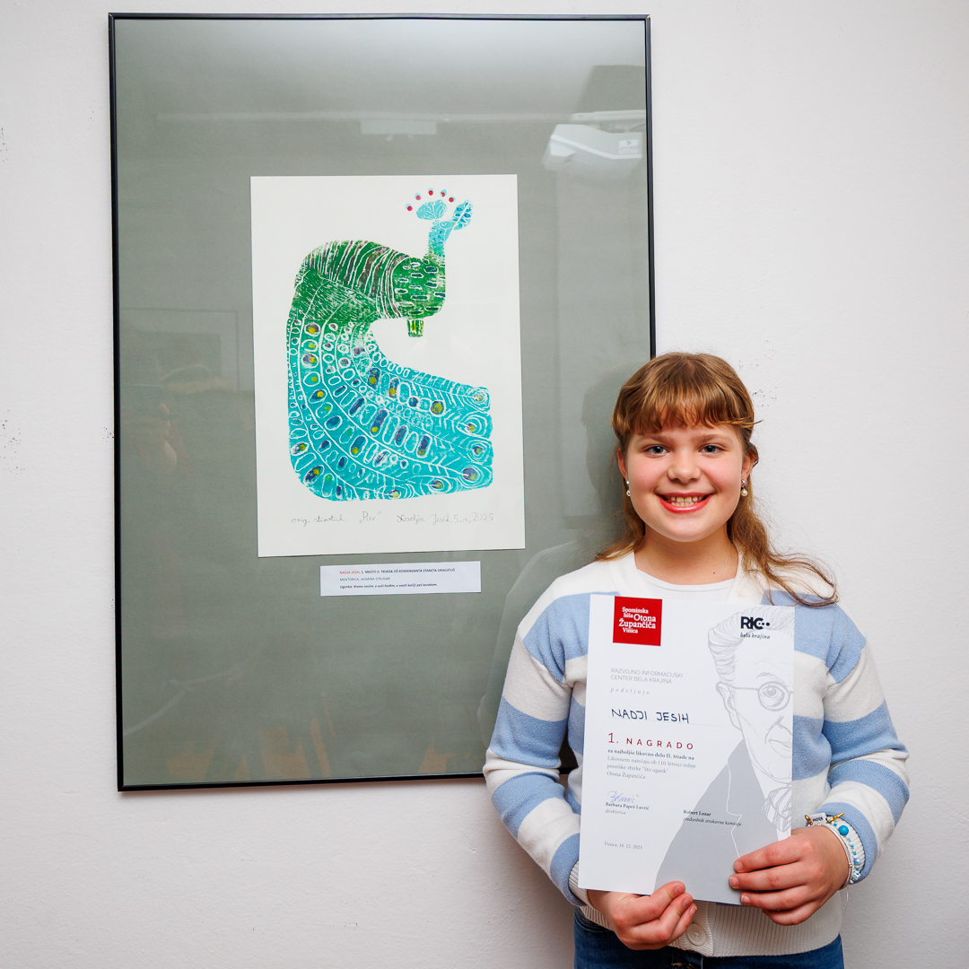 V torek, 16. 12. 2025, sem se udeležila podelitve nagrad likovnega natečaja Sto ugank Otona Župančiča. Podelitev nagrad je potekala v Spominski hiši Otona Župančiča na Vinici.