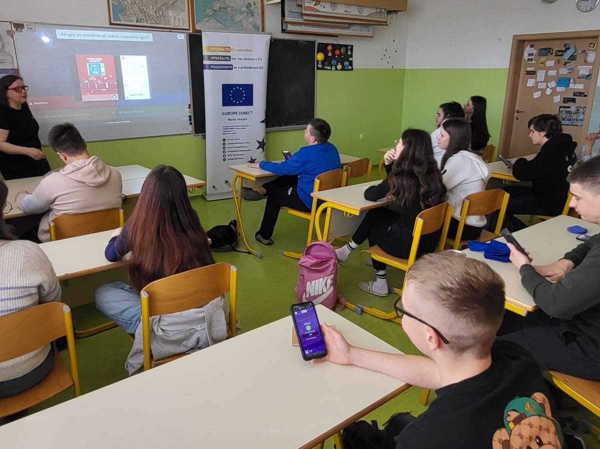 Gostji sta za učence 9. razreda najprej pripravili kviz o EU s praktičnimi nagradami. Nato je sledila delavnica o lažnih informacijah in varnosti na spletu. Na delavnici so se učenci naučili osnov prepoznavanja lažnih novic in laži na internetu, kot so lažne nagradne igre, neresnične objave na družabnih omrežjih ipd. Seznanili so se s pomenom kritične presoje informacij, ki jih najdejo na internetu. Učenci so lahko videli nekaj resničnih primerov lažnih informacij, lažnih novic in drugih laži na internetu. Na delavnici so se učenci pogovorili o spletnih izzivih s poudarkom na njihovi kritični presoji. Drugi del delavnice je bil sestavljen iz interaktivnega kviza, kjer so učenci pogledali več primerov novic, video posnetkov ter drugih zapisov na internetu in se preizkusili ali znajo prepoznavati laži na internetu. Učenci so pri kvizu izkazali precejšnje znanje, a ozaveščanje o varnosti na spletu in previdnost ni nikoli odveč.
