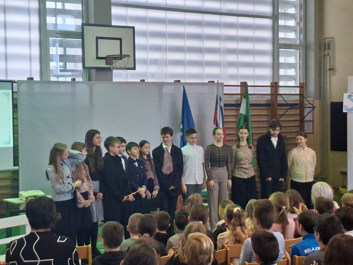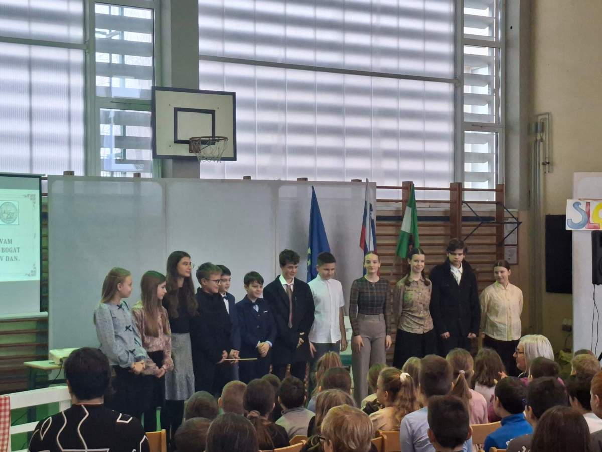 Za prireditev so zaslužni naslednji nadarjeni učenci: Evita Šmalcelj (6. r.) kot Julija Primic, Neža Koce (7. r.), recitacija Apela in čevljarja, Rebeka Kopač (7. r.) kot Zalika Dolenčeva, Jakob Špehar (7. r.) kot učitelj in Apel, Lovro Vuk (7. r.) kot Jernej Kopitar in recitacija Črtomirjevega govora, Samo Željko (7. r.) kot Andrej Smole, Jaša Perc (8. r.) kot uradnik in čevljar, Manca Težak (8. r.), recitacija Je od veselga časa teklo leto, Neja Fink (9. r.) kot Ana Jelovšek, Izidor Jesih (9. r.) kot Šimen Prešeren in Matija Čop, Nuša Alexandra Kočevar (9. r.) kot Mina Prešeren, Tadej Jesih (9. r.) kot France Prešeren in Neja Dajčman (7. r.) kot pripovedovalka in povezovalka prireditve.