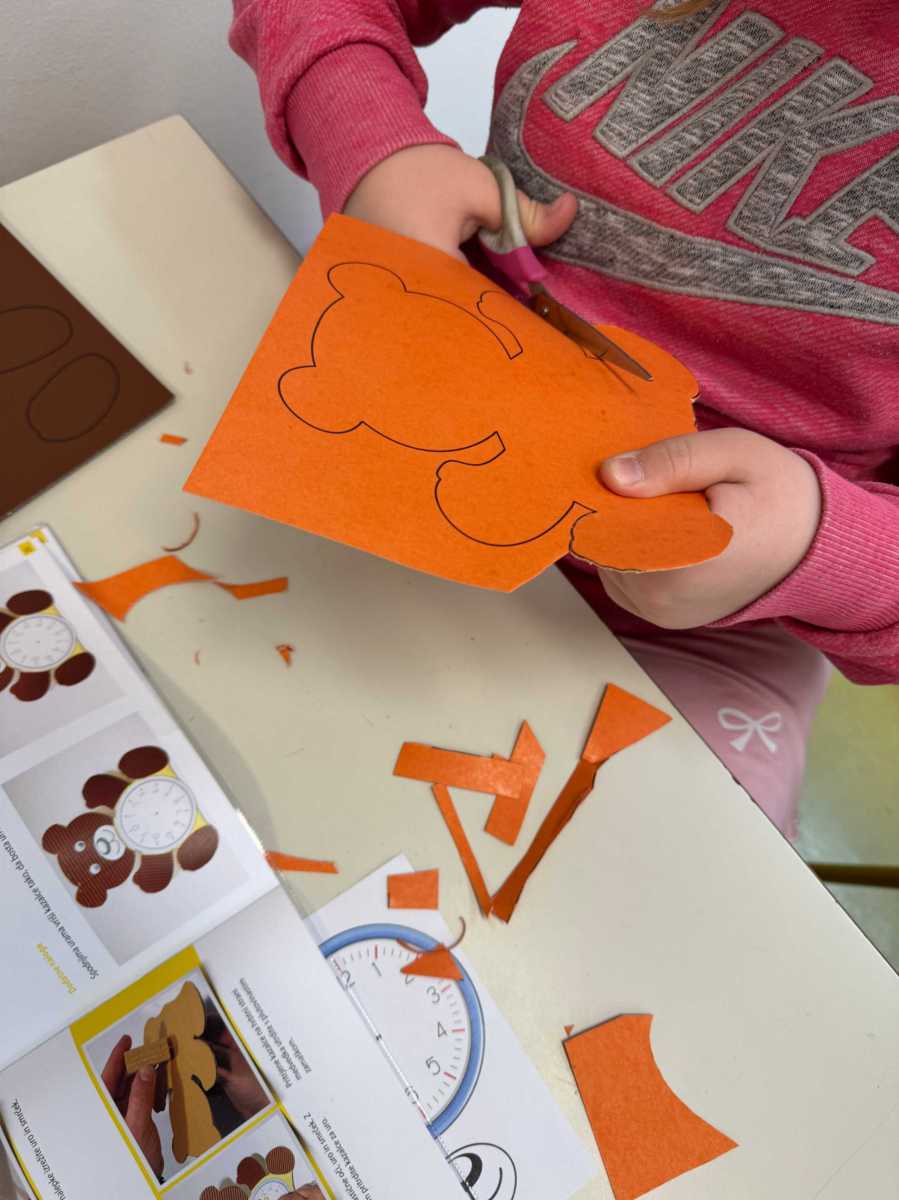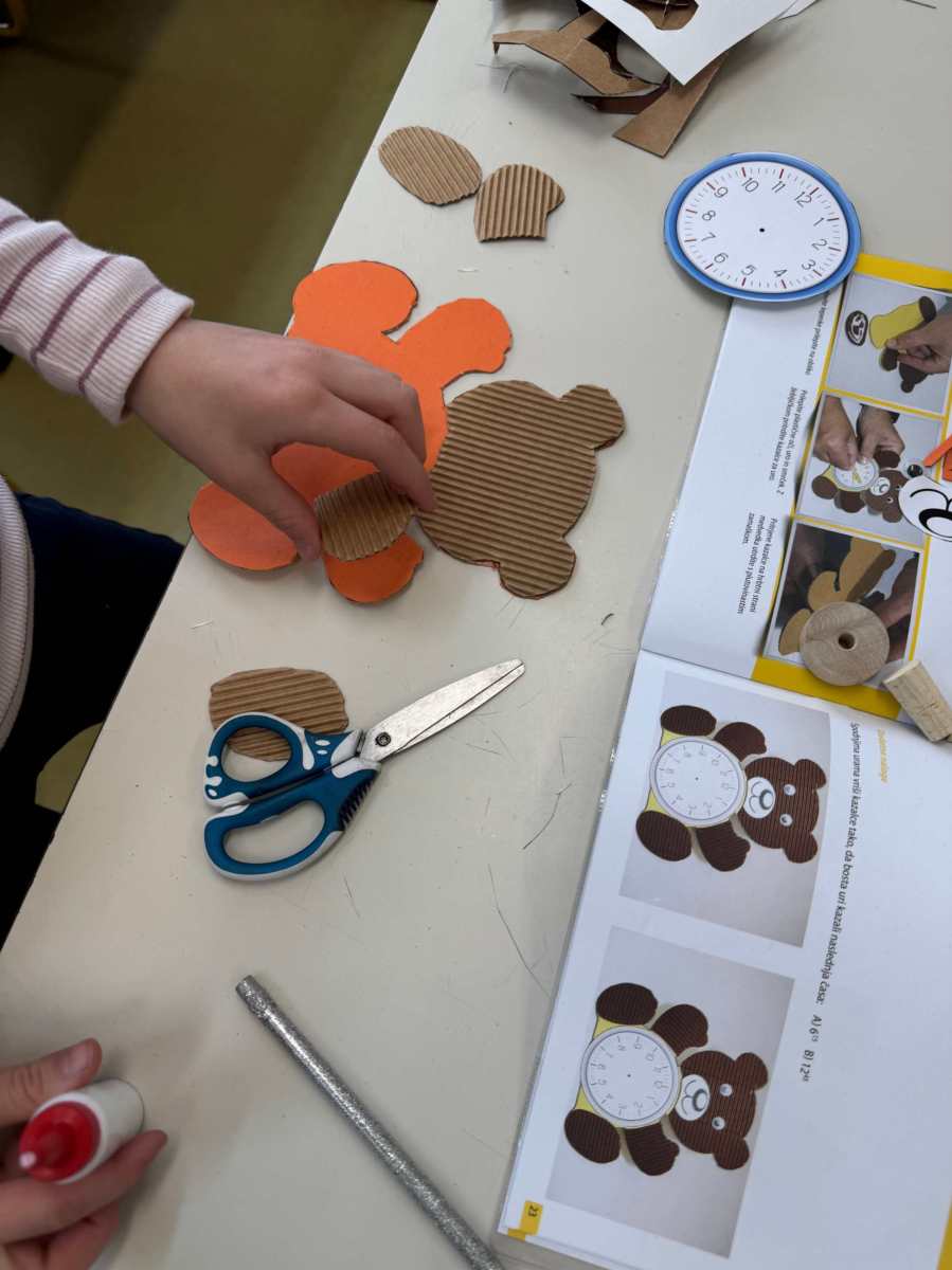Izdelovali smo medvedka iz papirja. Na njegov trebuh smo pričvrstili uro. Izdelek je bil ocenjen. Bilo je zelo lepo.