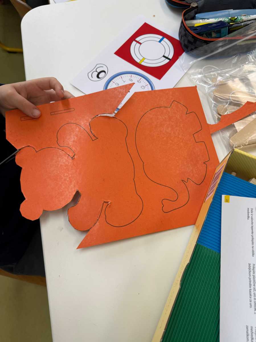 Danes, 18. 2. 2026, smo imeli tehniški dan. Na začetku nam je učiteljica predstavila navodila za delo in kriterije vrednotenja za ocenjevanje izdelka in poznavanja ure. Pripravili smo si potrebne pripomočke, iz škatle vzeli sestavne dele in se lotili dela. Delat smo šli ure v obliki medvedka. Izdelek je bil na koncu ocenjen. Komur je prej uspelo, se je lotil še izdelave stojala za pisalni pribor, ki pa je zahteval nekoliko več znanja in potrpežljivosti.