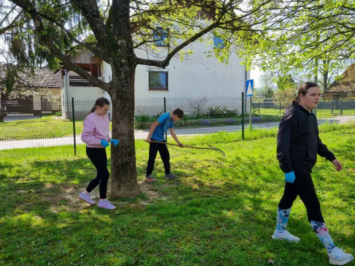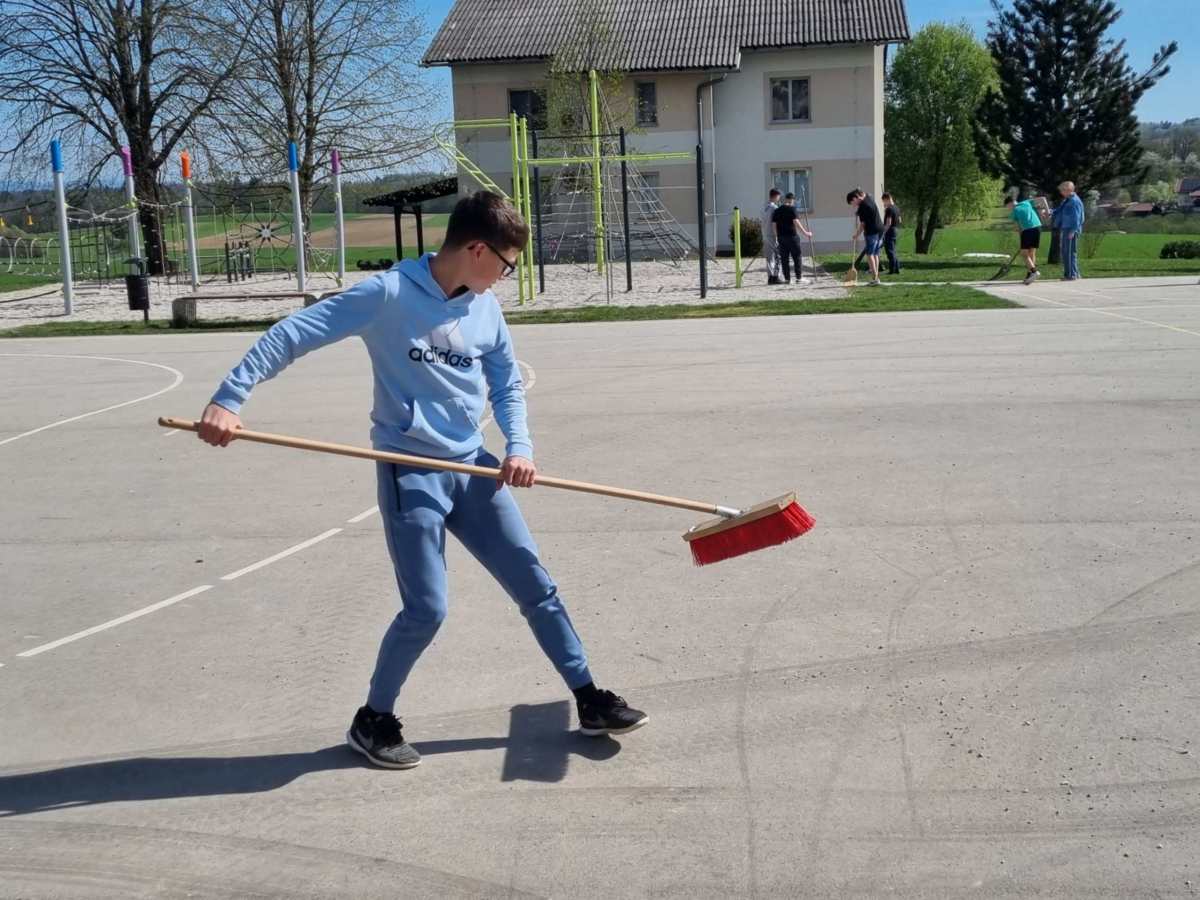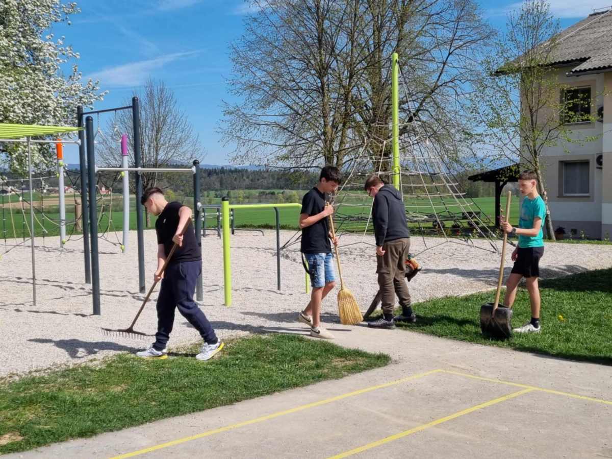 Učenci 6. razreda smo čistili šolski vrt z igrali, 7. razred je poskrbel za krožišče, avtobusno postajo in parkirišče, učenci 8. in 9. razreda pa so čistili igrišče in njegovo okolico. Pobirali smo smeti, pobirali veje, pulili travo, grabili in urejali okolico, da bi bila ta bolj čista in prijetna za vse.