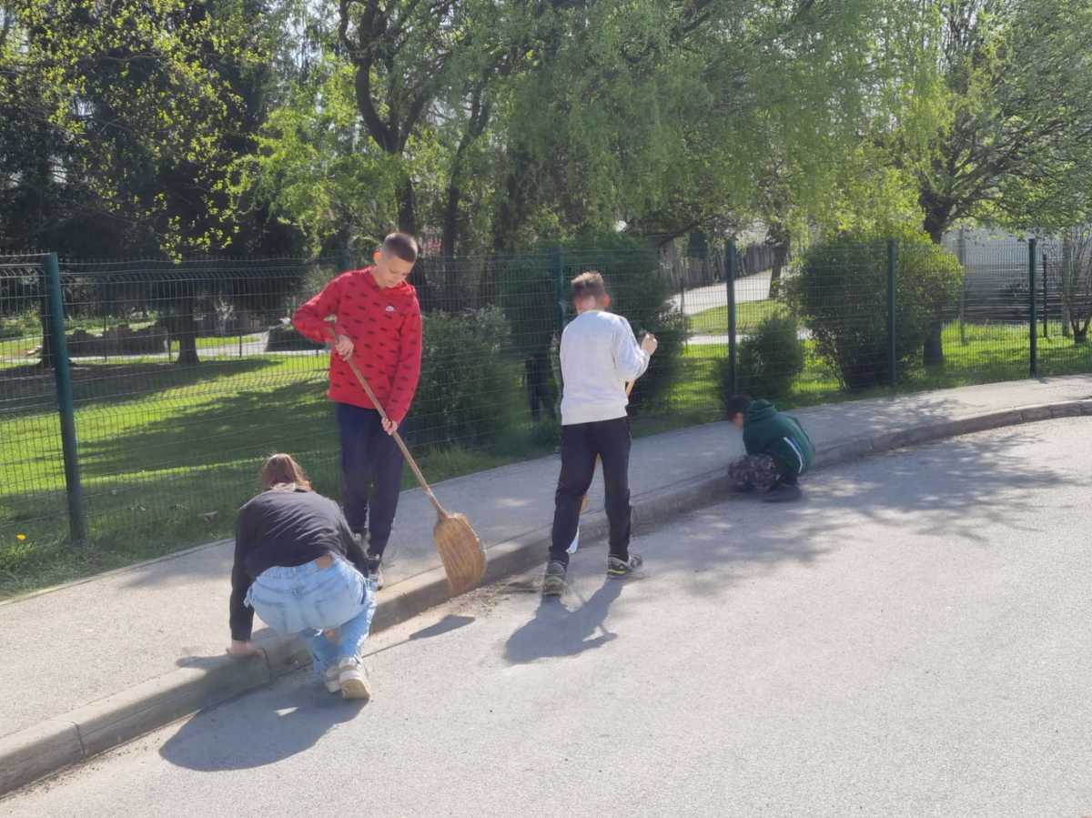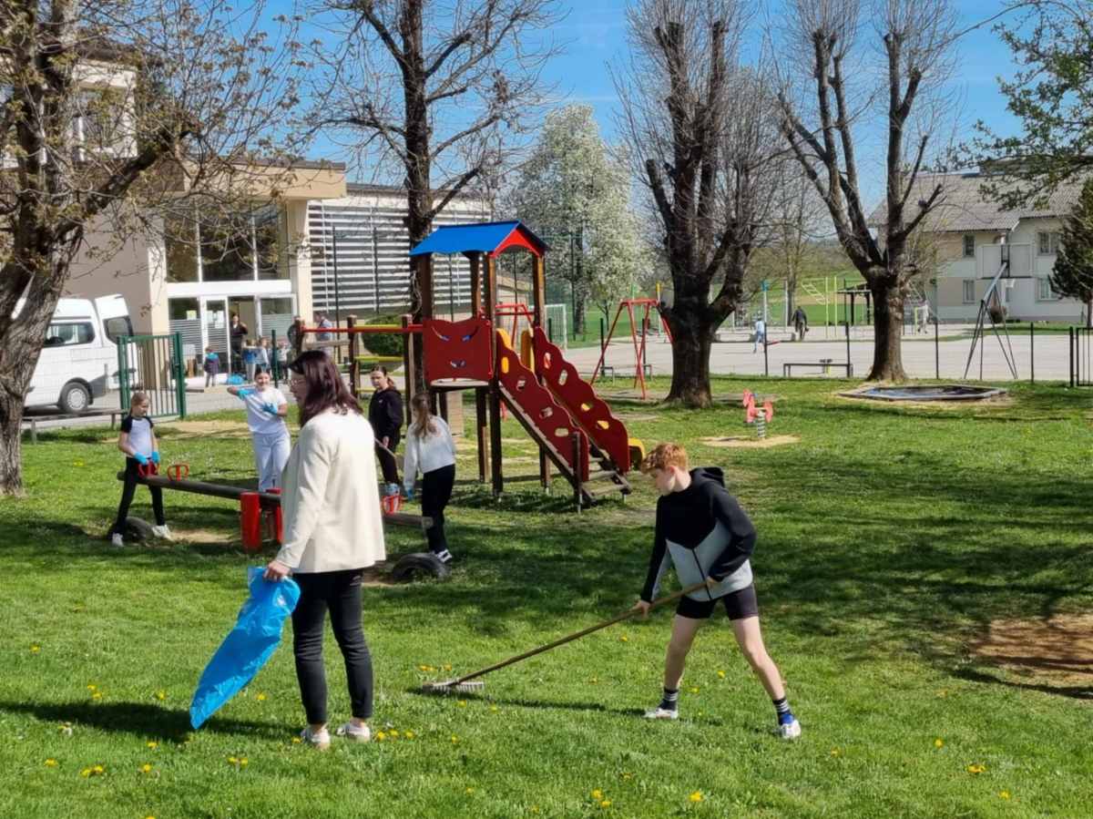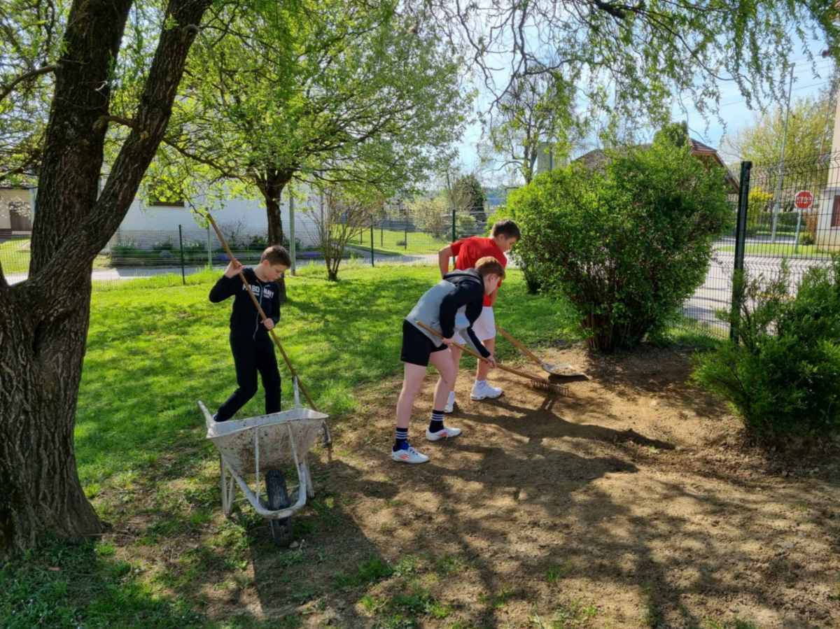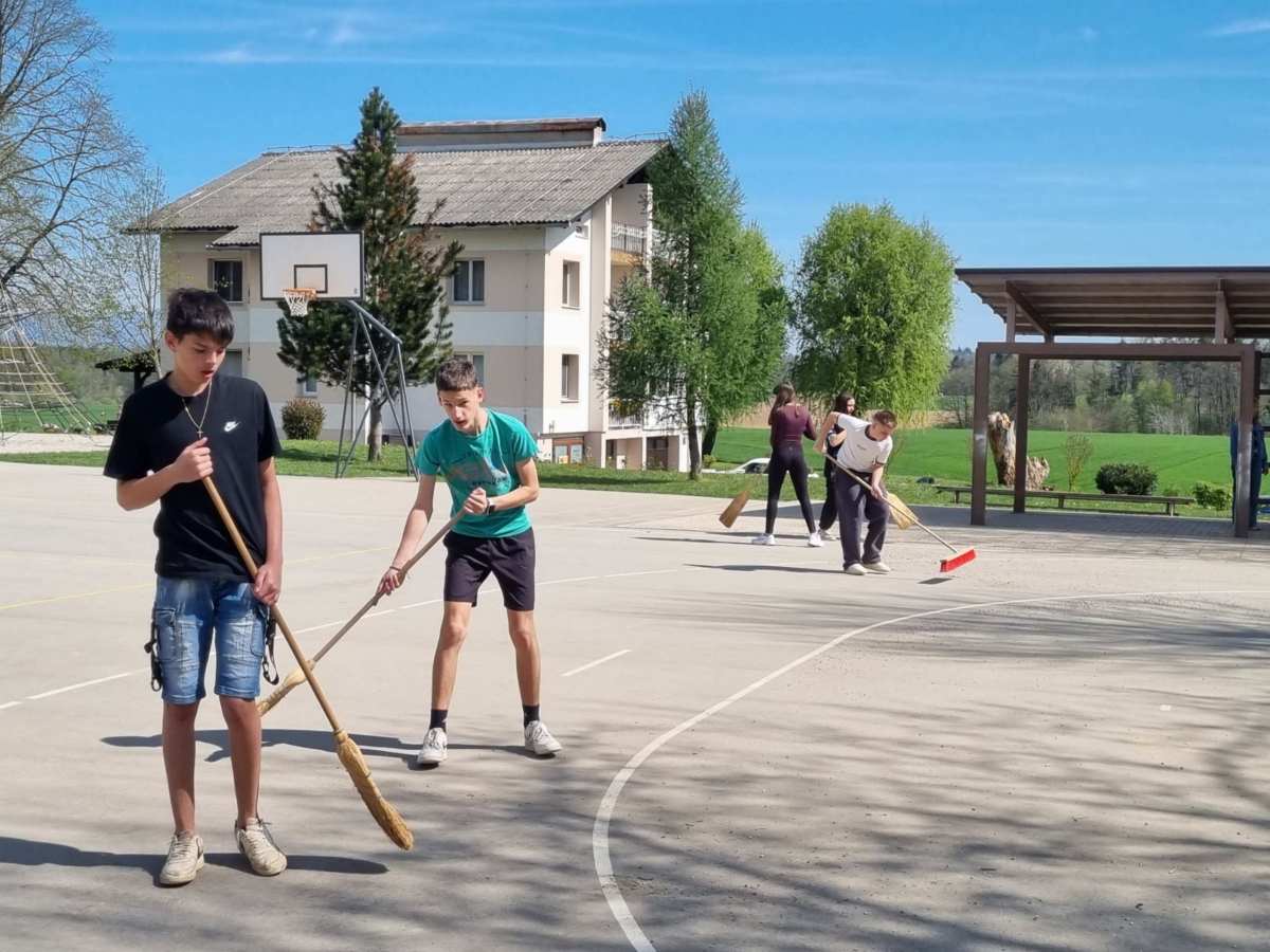Učenci 6. razreda smo čistili šolski vrt z igrali, 7. razred je poskrbel za krožišče, avtobusno postajo in parkirišče, učenci 8. in 9. razreda pa so čistili igrišče in njegovo okolico. Pobirali smo smeti, pobirali veje, pulili travo, grabili in urejali okolico, da bi bila ta bolj čista in prijetna za vse.