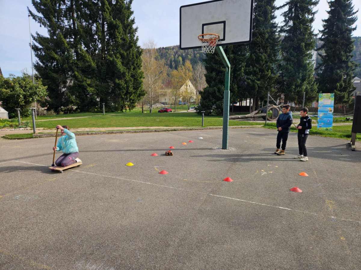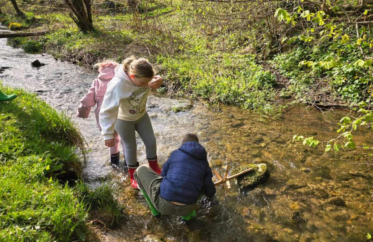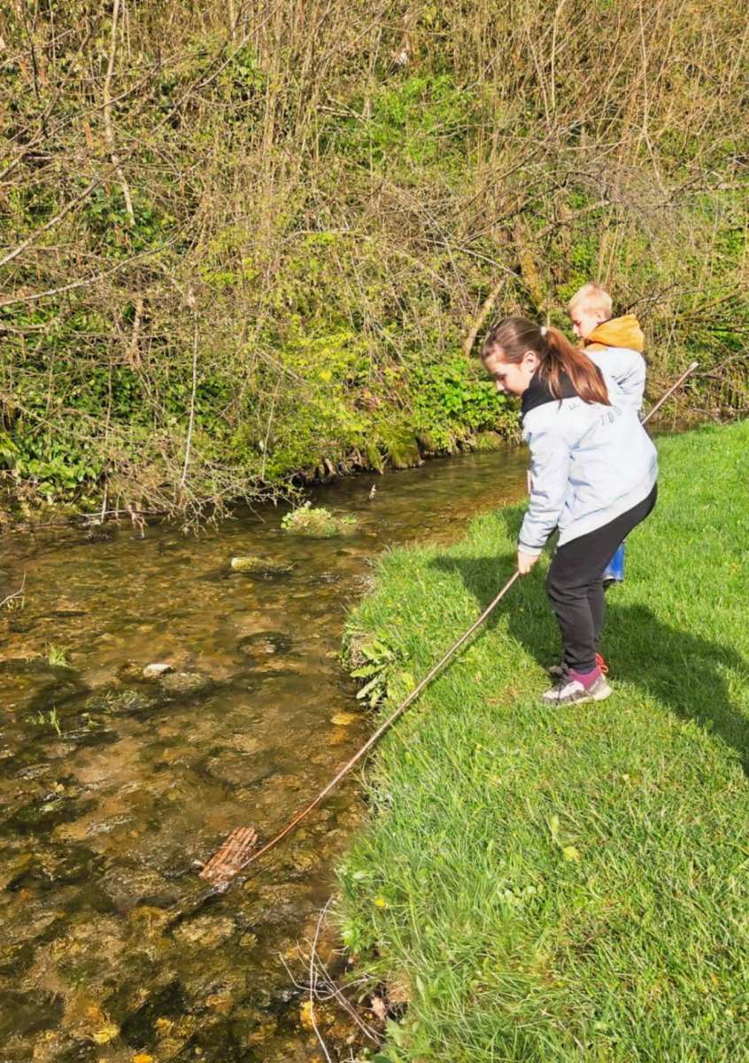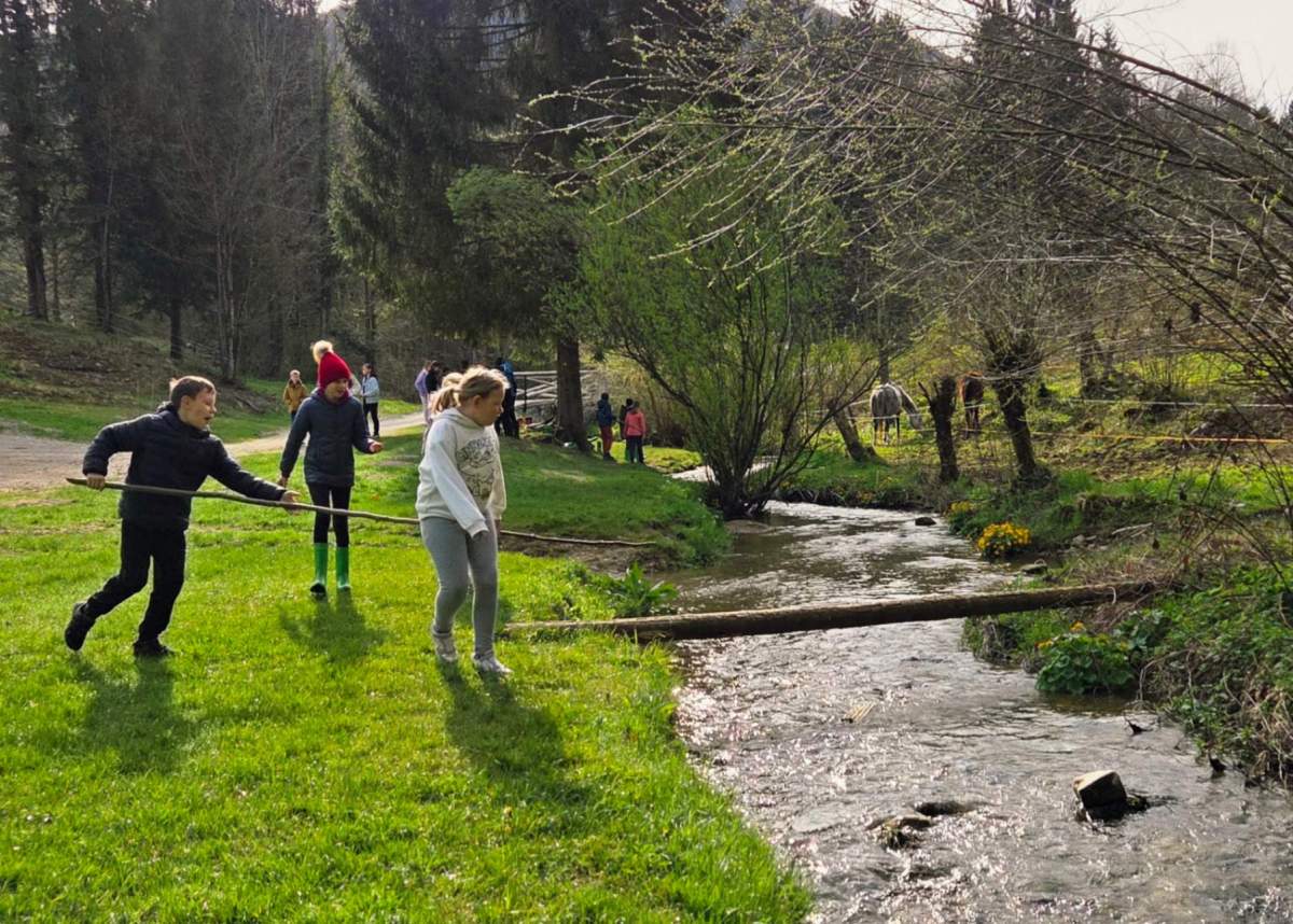 Tam nam je učiteljica najprej razložila, kaj bomo delali. Ideja nam je bila takoj všeč. Razdelili smo se v skupine in začeli po potoku spuščati majhne splave. Eden od učencev v naši ekipi je bil zadolžen za postavitev splava v potok in iz njega. Drugi je bil zadolžen za to, če bi splav zataval, ga bi s palico povlekel k sebi.