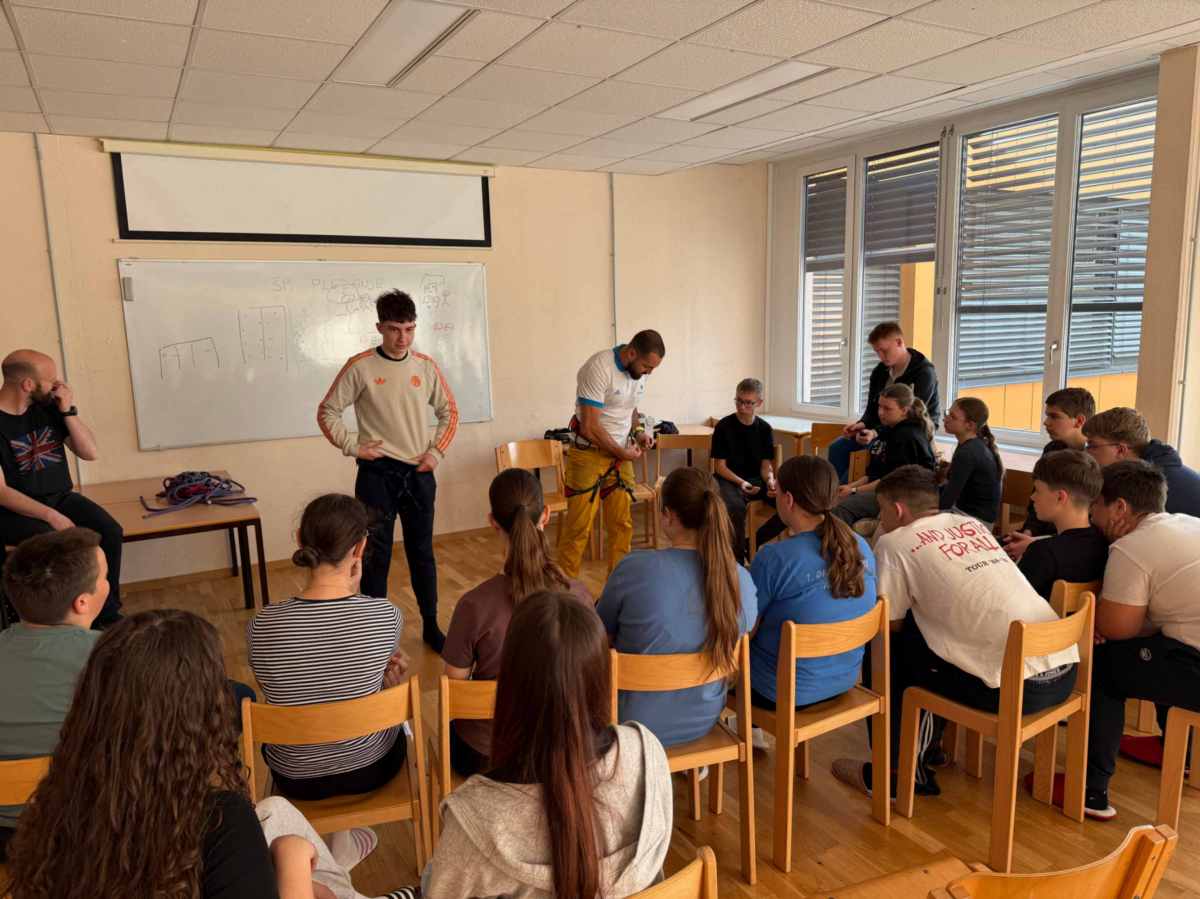 V četrtek, 16. aprila 2026, so učenci v okviru šole v naravi v Tolminu preživeli še en razgiban in športno obarvan dan. Dan so začeli ob 7. uri, ko so se zbudili in imeli kratek jutranji sestanek, na katerem so izvedeli, kako bo potekal dan. Po zajtrku so se pripravili na dopoldanske dejavnosti. Ena skupina se je odpravila na kolesarjenje po Tolminu in okolici, druga pa se je preizkusila v plezanju na plezalni steni.