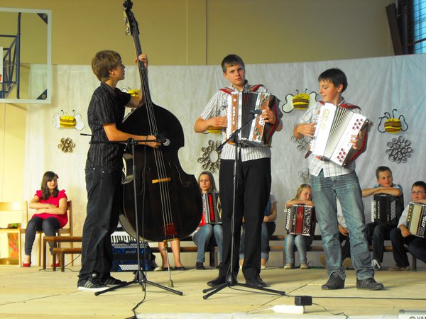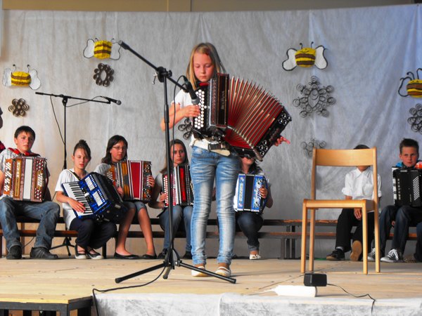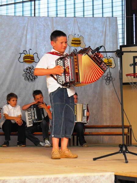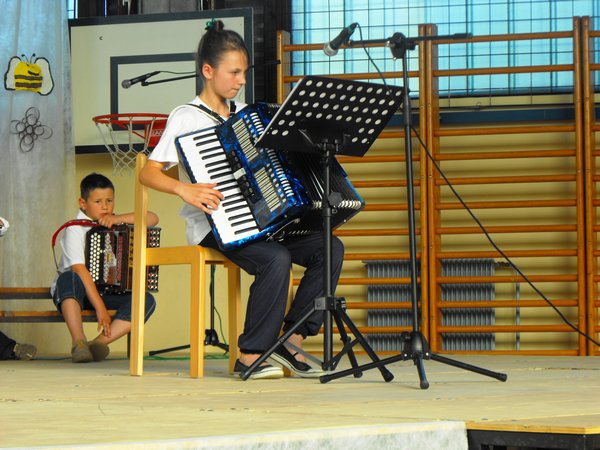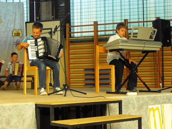 Najprej so zapeli učenci 1. in 2. razreda ob spremljavi učiteljice Mojce na harmoniki. Sledil je nastop desetih harmonikarjev, trije so igrali na sintesajzer, igrali so še na vilolini, saksofon, klarinet, na kozarce napolnjene z vodo; sodelovali so tudi recitatorji, plesalci, igralci so zaigrali dva skeča, zapela sta še otroški in mladinski pevski zbor.