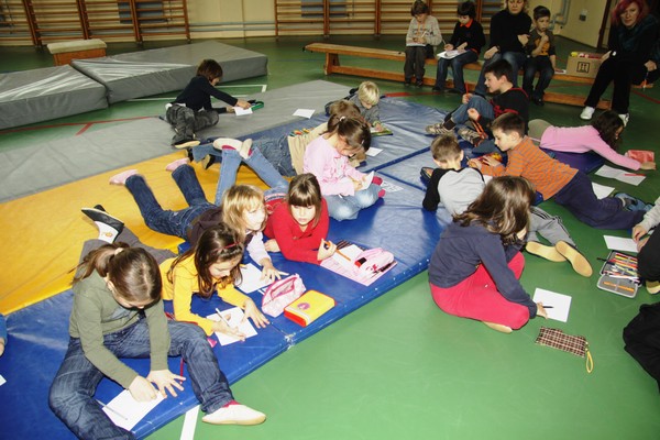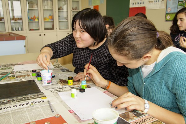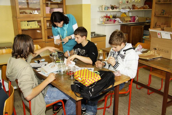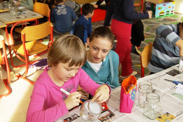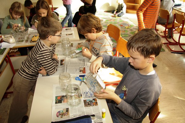 Sledile so likovne delavnice po razredih. Vsak razred je naredil drugačen izdelek. Tako so nekateri poslikali okenska stekla, drugi kozarce, tretji pa so barvali različne okraske, kot so obeski za verižice, za smrečice in prstane.