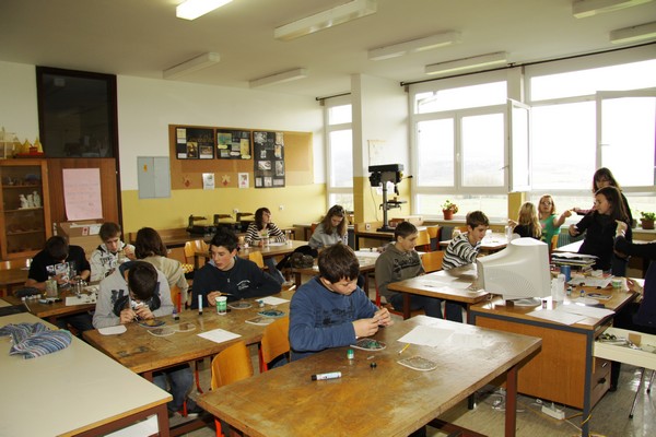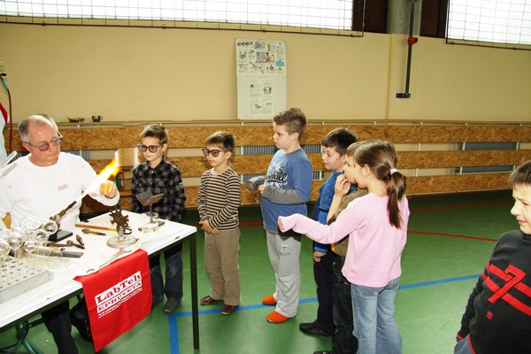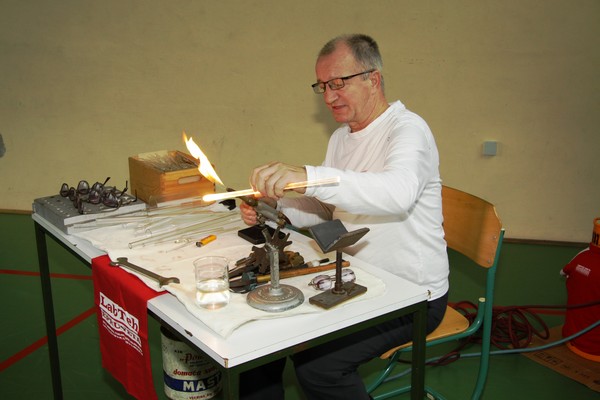 Iz podjetja LabTeh iz Ljubljane sta nas obiskala gospoda Boris in France in predstavila učencem in učiteljem načine izdelovanja in oblikovanja stekla. Boris nam je povedal, da je v Sloveniji samo 5 steklopihačev, za kar je potrebno 10 let učenja. France pa je povedal, da se s tem delom ukvarja že 43 let. Osnova za izdelavo je kremenčevo steklo. Masa se mora segreti pri 1200 °C. Steklo se oblikuje na ognju v različne oblike predmetov. Pri izdelovanju izdelkov se masa s pihanjem lahko vleče, širi, oži, veča, manjša in tako nastanejo različni izdelki; v našem primeru je nastala vaza. Povedala sta še, da se material za izdelavo steklenih izdelkov kupuje v Ameriki, Franciji, na Češkem, največ pa v Nemčiji. Cena za 1 kilogram stekla je 10 €.