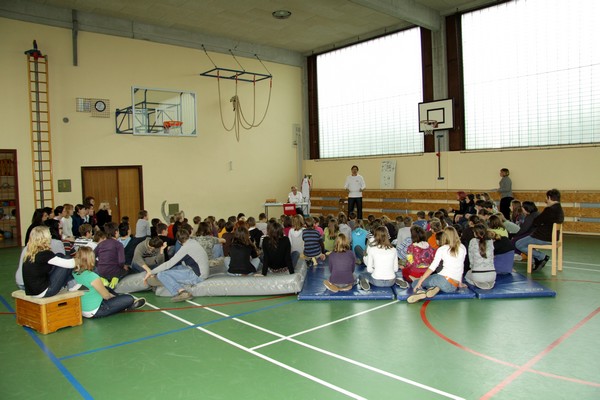 Po malici smo učenci in učitelji v telovadnici šole nadaljevali s praktično izdelavo steklenih izdelkov. Izdelke smo izdelovali s pihanjem v različno velike kroglice. Naše izdelke smo lahko odnesli domov za spomin.