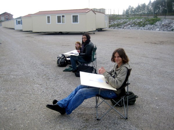 Nato nas je učiteljica Jasmina Kobe pospremila na ogled okolice. Izbrali smo si kraj, kjer smo risali – učiteljica nam je tudi sama svetovala izbor najprimernejšega mesta.