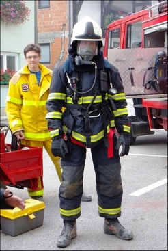 V notranjosti doma smo primerjali različne opreme prostovoljnih gasilcev. Nekateri imajo še vedno stare, drugi nove uniforme, razlikujejo se tudi škornji, ki lahko stanejo celo čez 100 €.